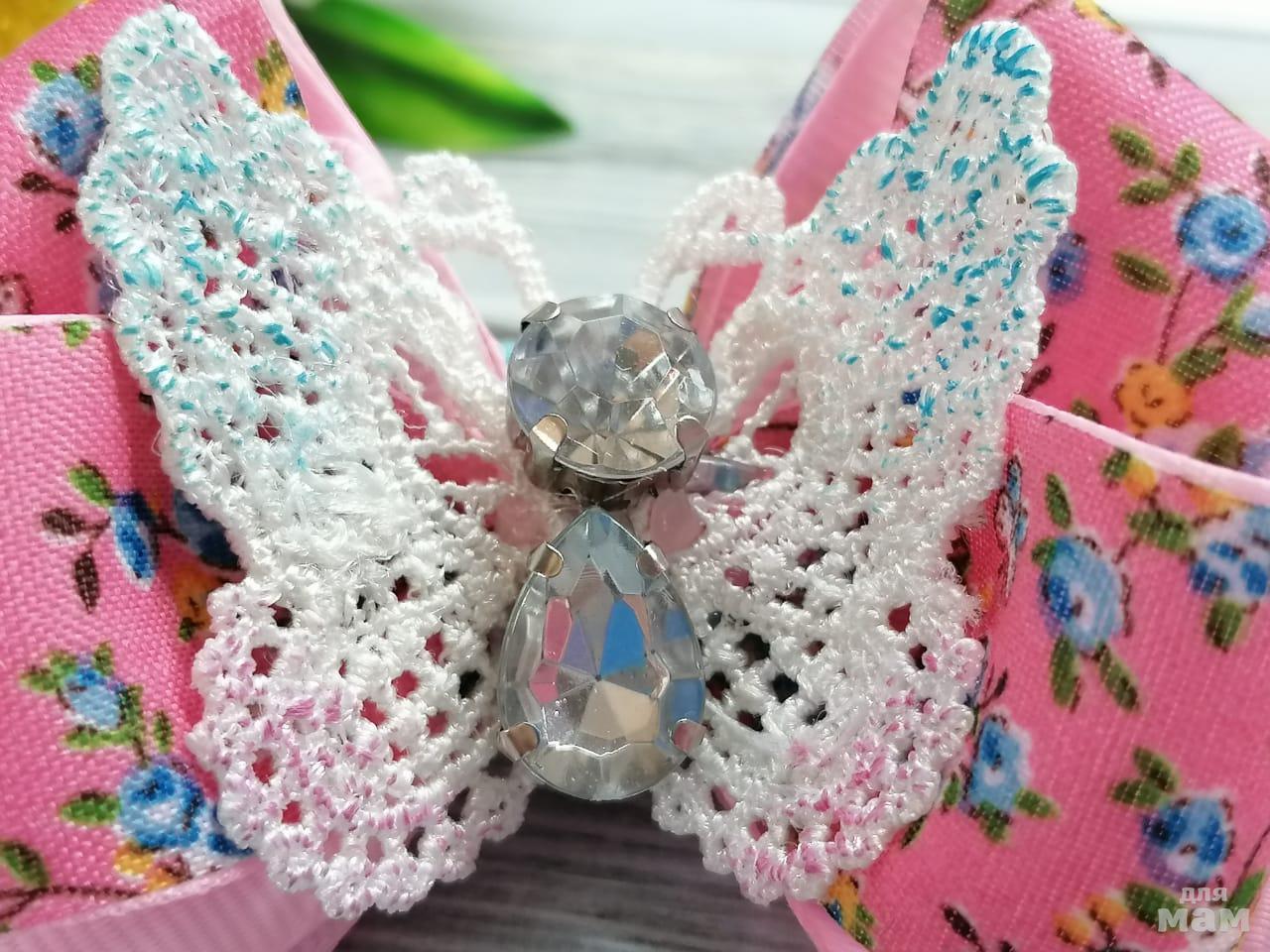 6) Школьный бантик с ювелирной серединкой и шикарным кружевом.