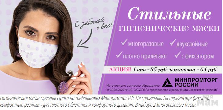 Стильная маска! На переносице фиксатор, регулируемые резинки - для плотного облегания и комфортного дыхания. Не стерильна. Не является мед. защитной маской. Гигиеническая маска сделана строго по требованиям Минпромторг РФ.