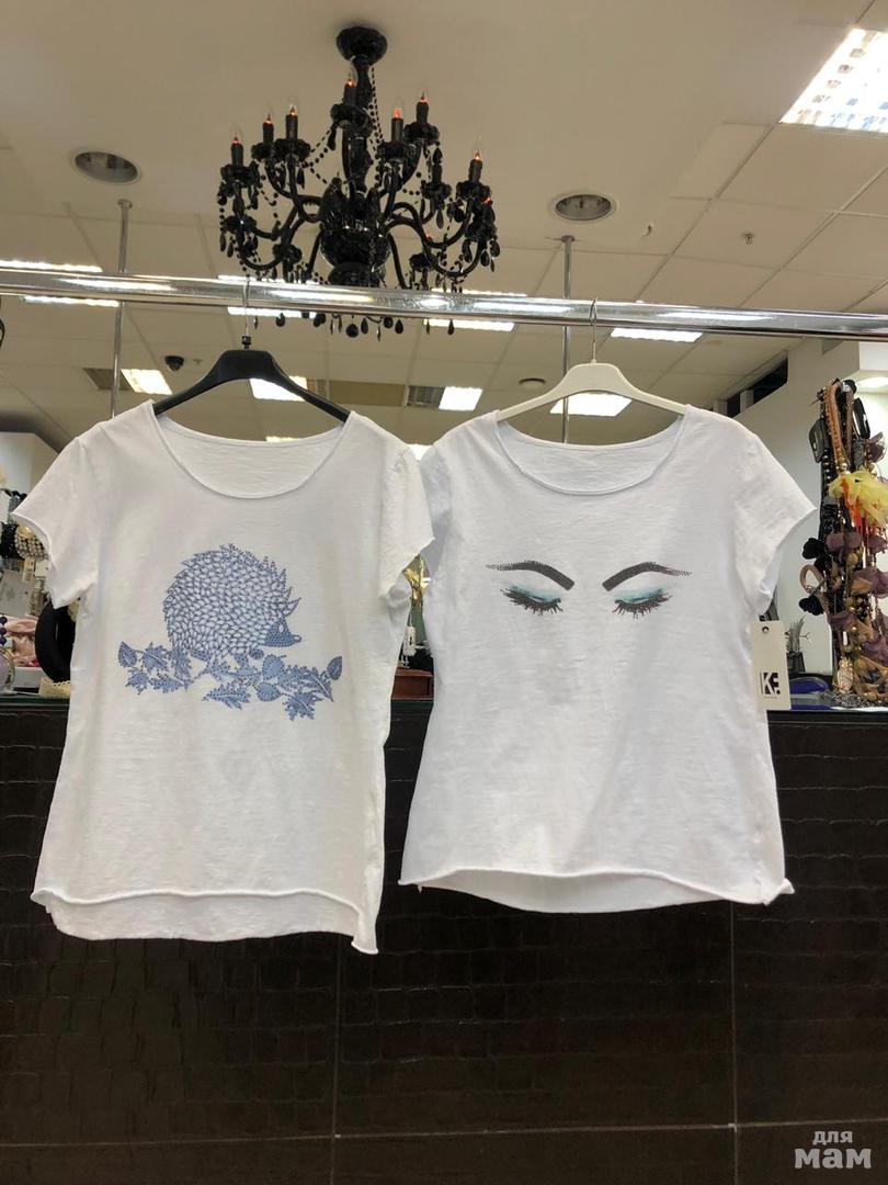 Футболки декорированы стразами