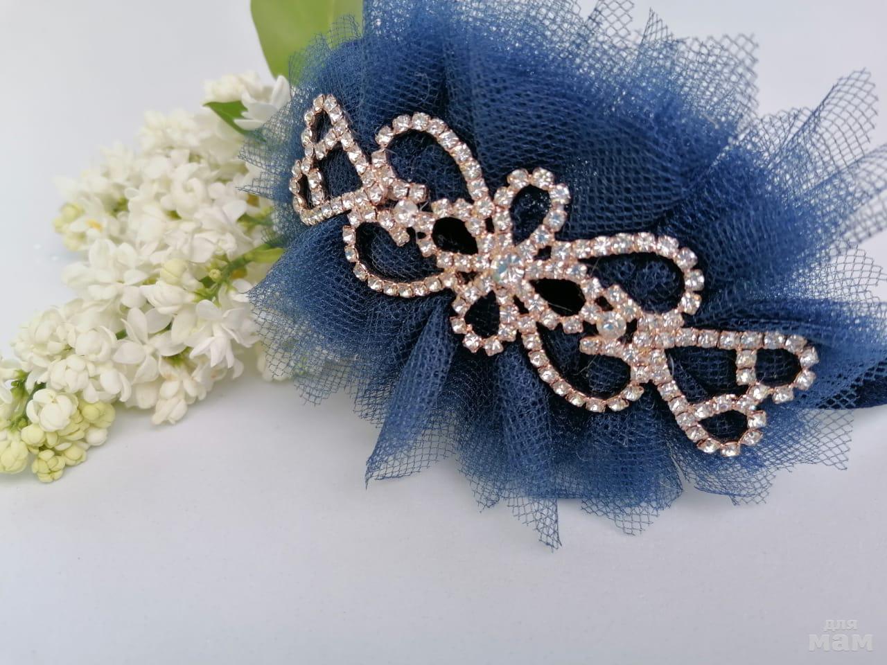 Эксклюзивный ободок с бархатной основой темно-синего цвета для особого случая. Очень изысканный и элегантный.