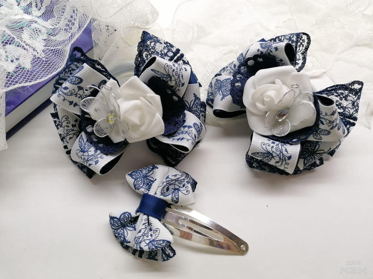 4) Школьный набор с заколкой клик-клак. Бабочки пришиты! Без повтора.