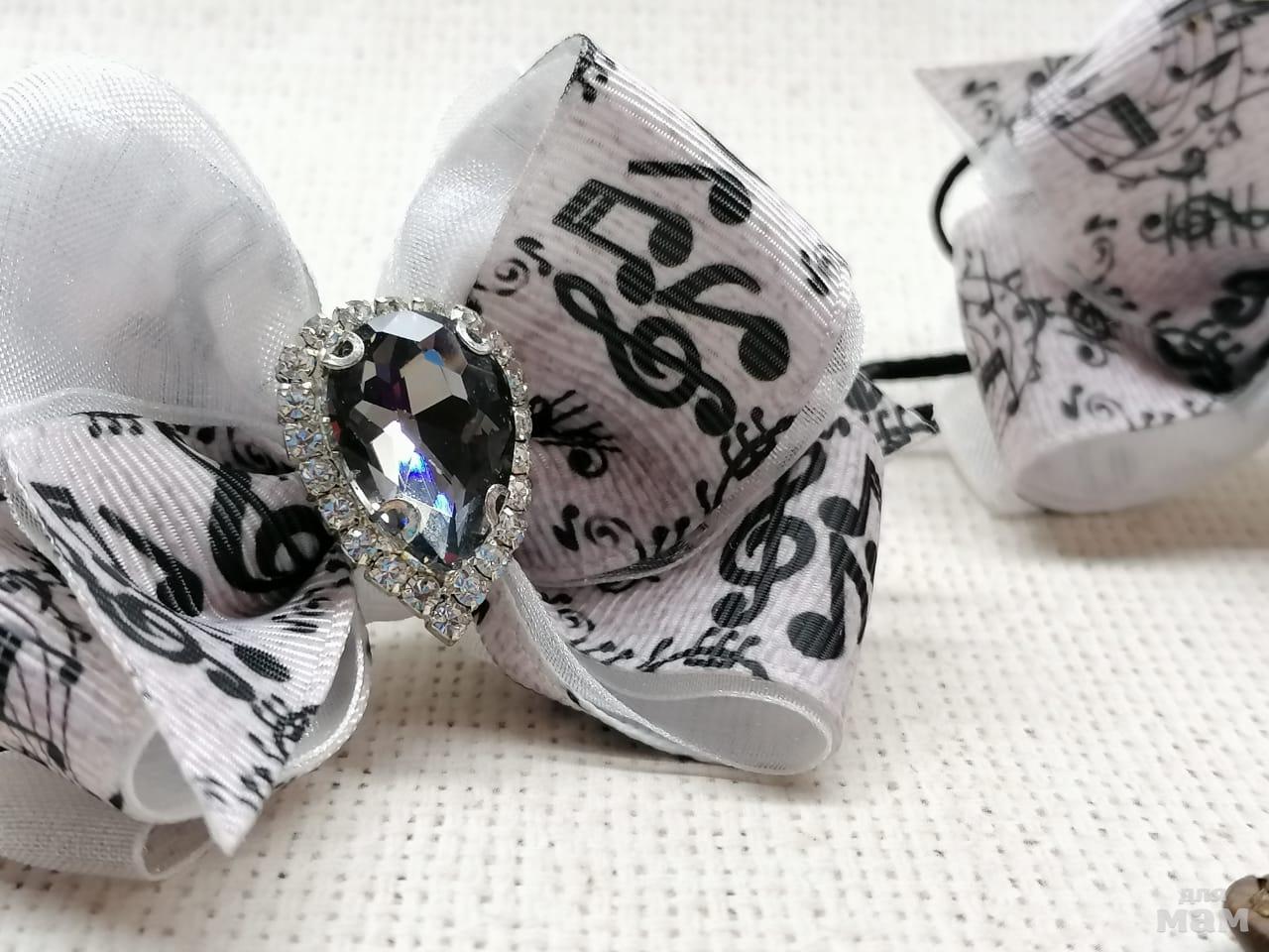 3) Музыкальные бантики. Репс, органза, декоративные элементы. Размер 7,5 см.