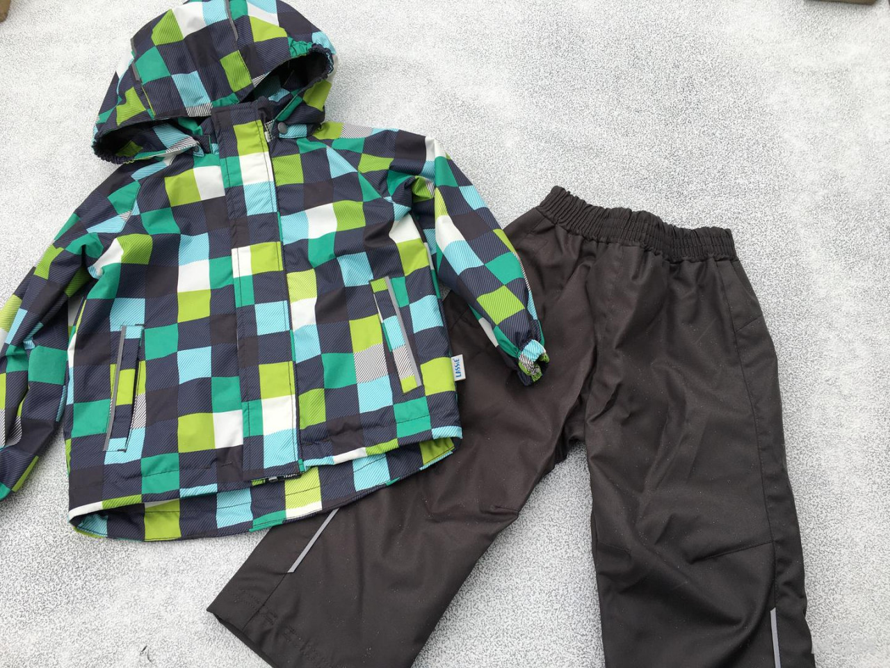 Штанишки из мембранки 10000-шершавая ткань! Мои штанишки носят и холодным летом и в дождь и зимой с поддевой. Очень удобные и практичные.
