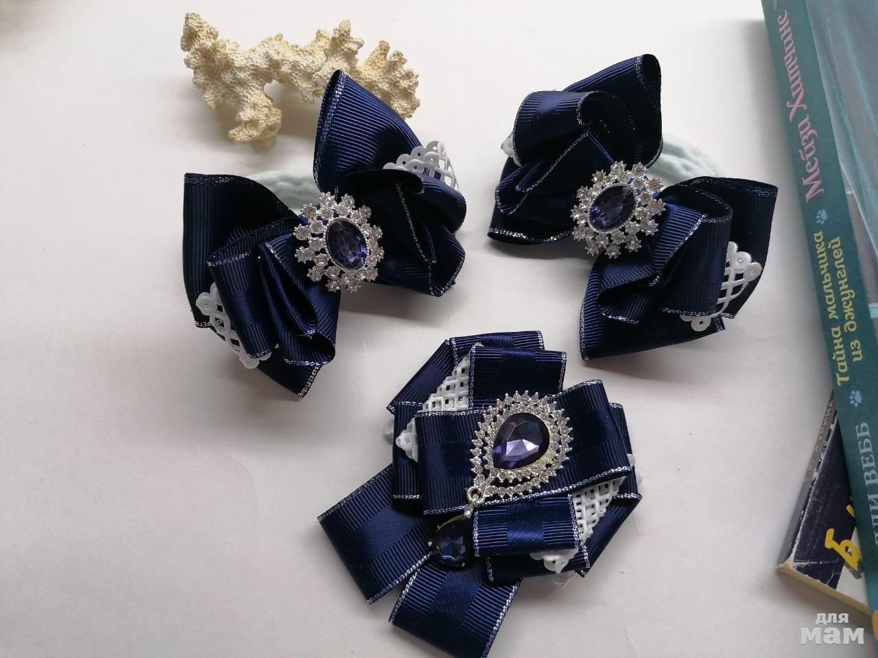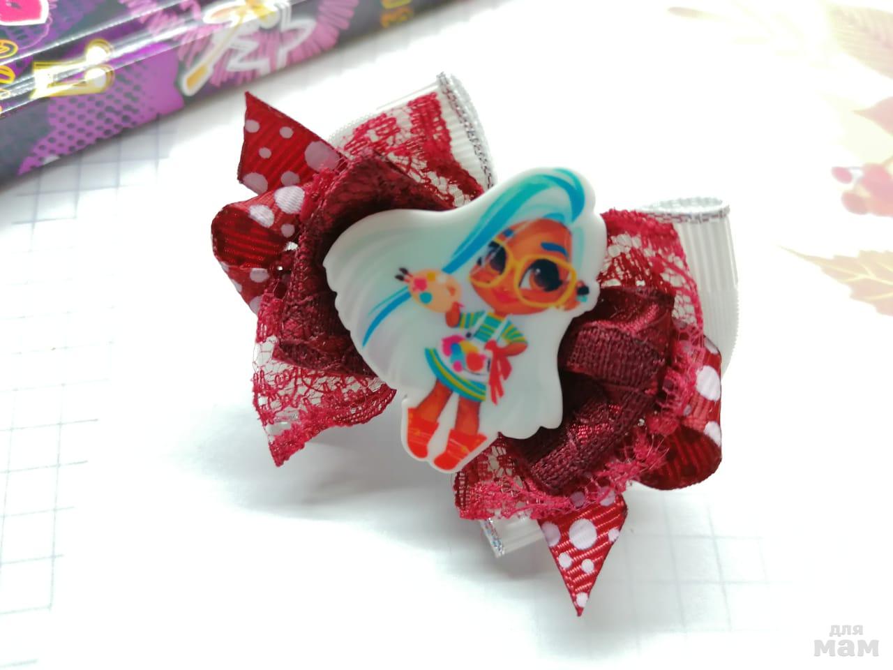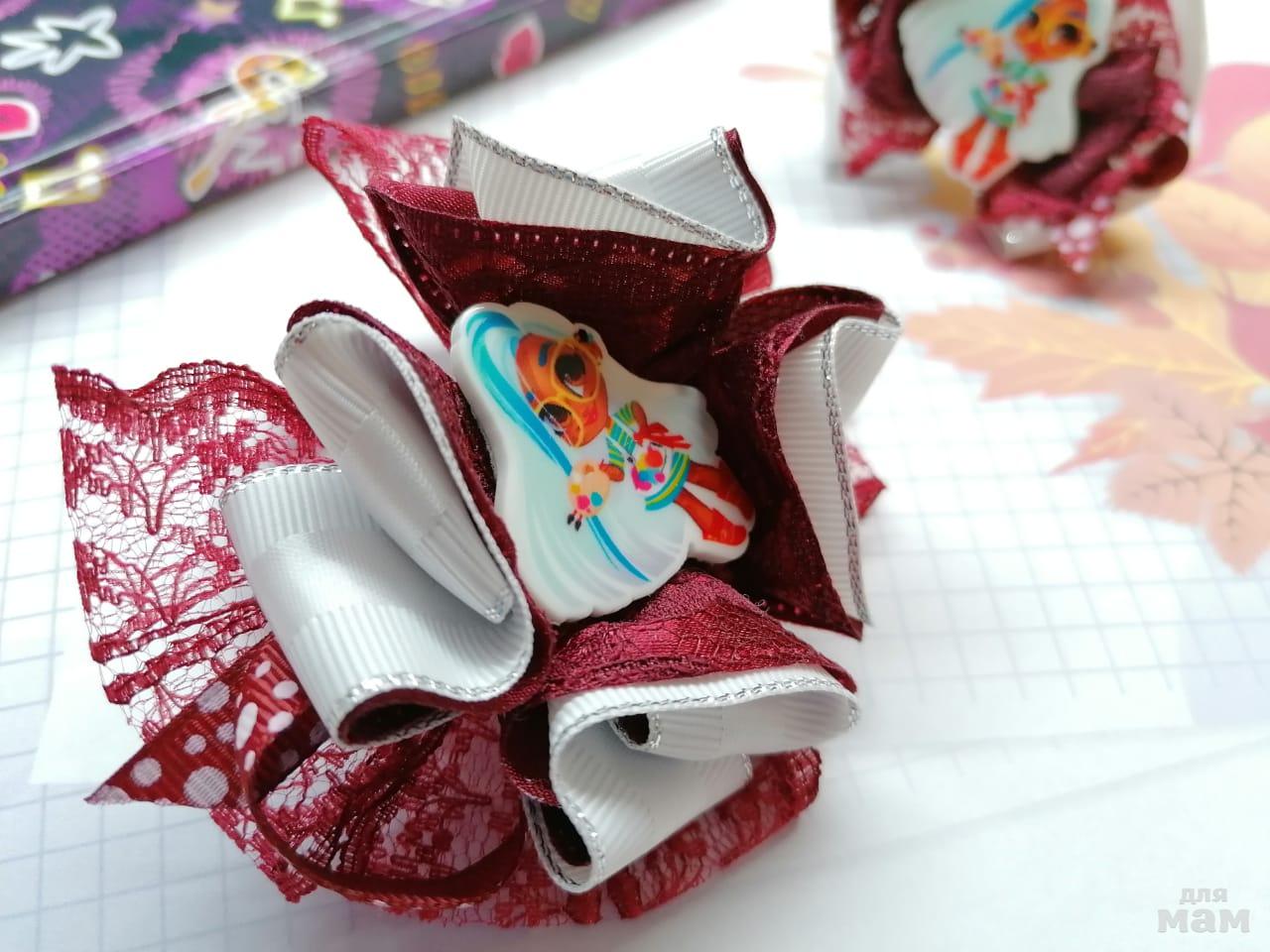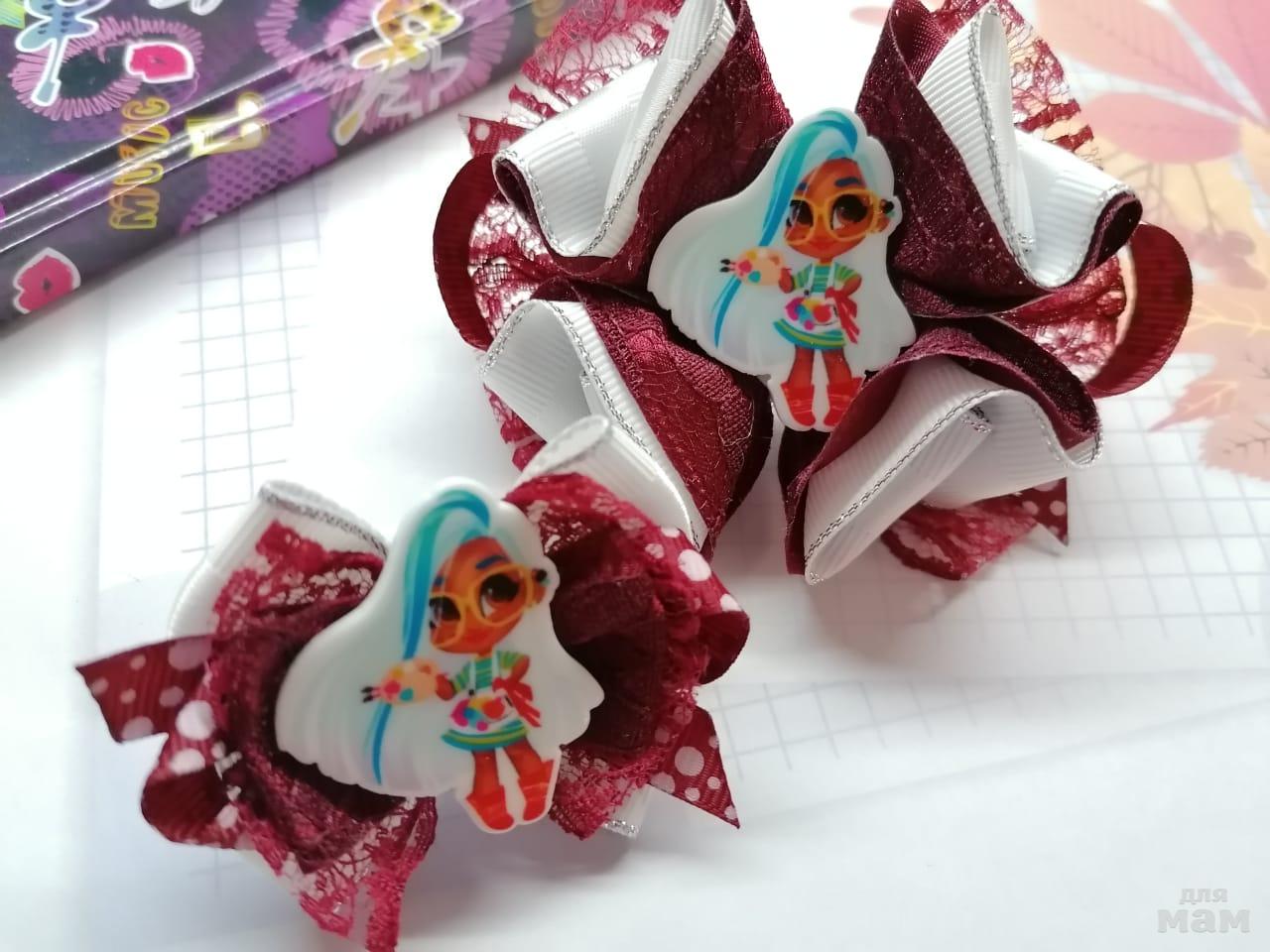 5) Набор из двух бантиков. Большой (8,5 см) и маленький (6 см) украсят косичку и освежат бордовую форму. А можно и не под форму) Классные, позитивные, нарядные!