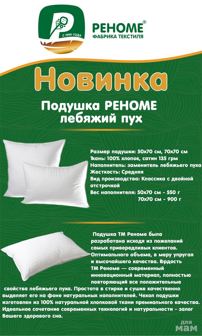 Подушка заменитель лебяжьего пуха сатин Реноме 50*70 - 549р 525р