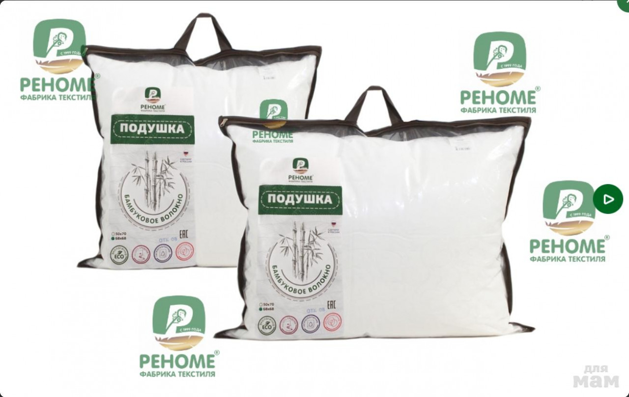 Подушка бамбук, х/ф тк поплин ДВОЙНАЯ Реноме 68*68, 50*70 2шт - 717+562*2=1841р