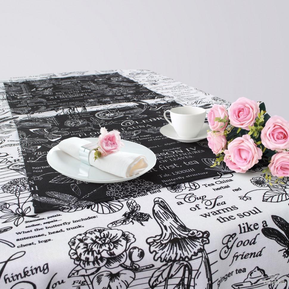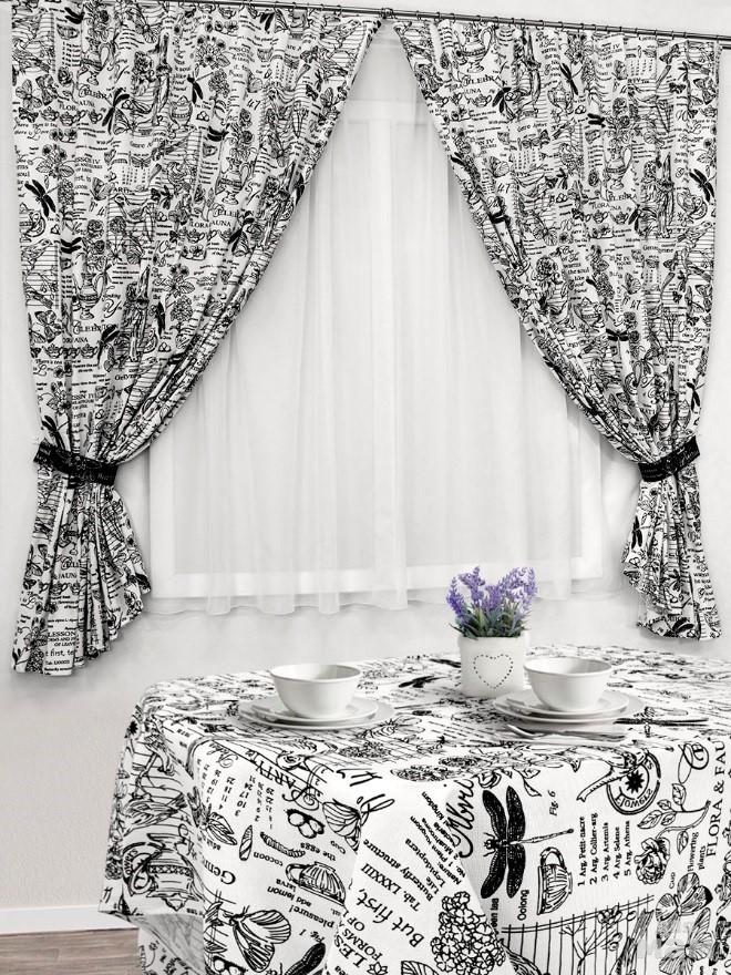 Размер для комплекта на 6 персон: Шторы 150x180 см. (2 полотна), скатерть 145x200 см., Салфетка 40x40. (6 штук)