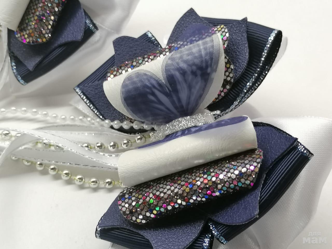 1) Нарядные бантики, кому надоел белый цвет. Размер банта 10см. На солнце- огонь!! Шлейф шикарнейший! В работе кожа и бесподобный глитер.