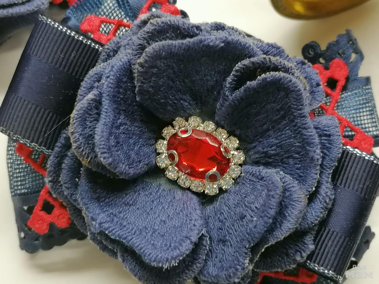 16) Эксклюзивный эстет с лозой и шикарным кружевом. Размер бантика 8см Цвет ТЕМНО СИНИЙ!