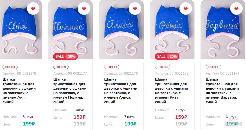 РусБубон. Шапочки трикотажные с именем- 159 руб.