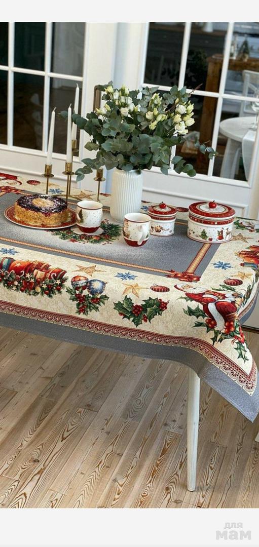 Девочки ,в наличии очень красивая скатерть,подойдет как на прямоугольный так и на овальный стол! Создаёт праздничное настроение и уют.