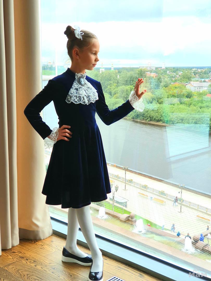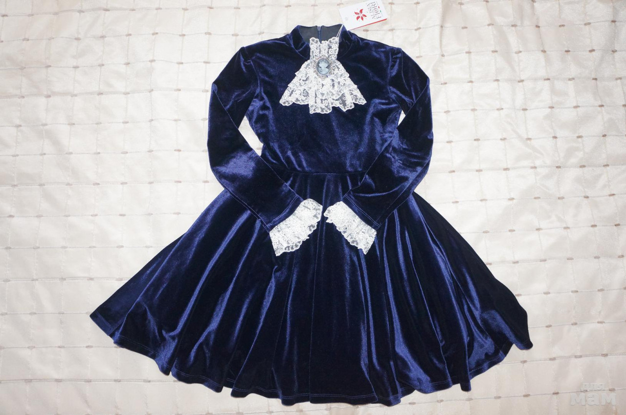Брала такое платье своей дочери в прошлом году. На фото рост 132 см ,платье в размере 128-134.