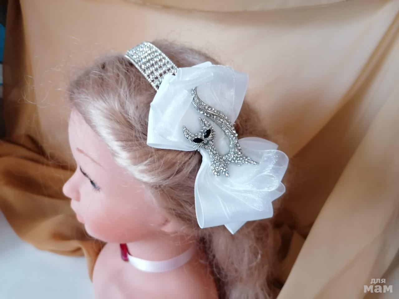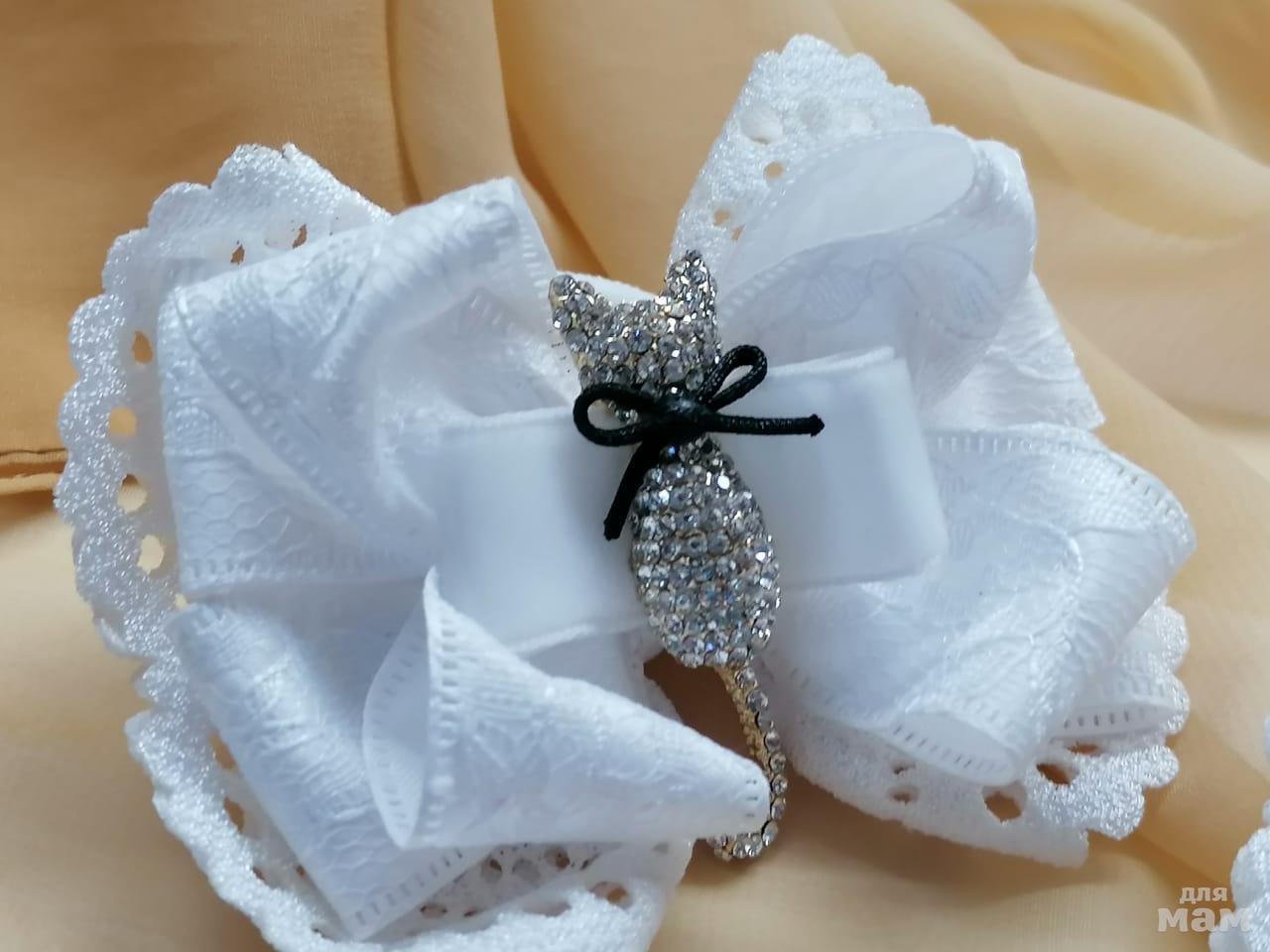 6) Котейка для избранных! На нарядном ободке. Использован мягкий репс и тончайшая органза. Размер бантика примерно 11-12 см.