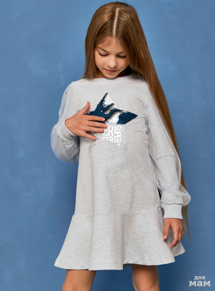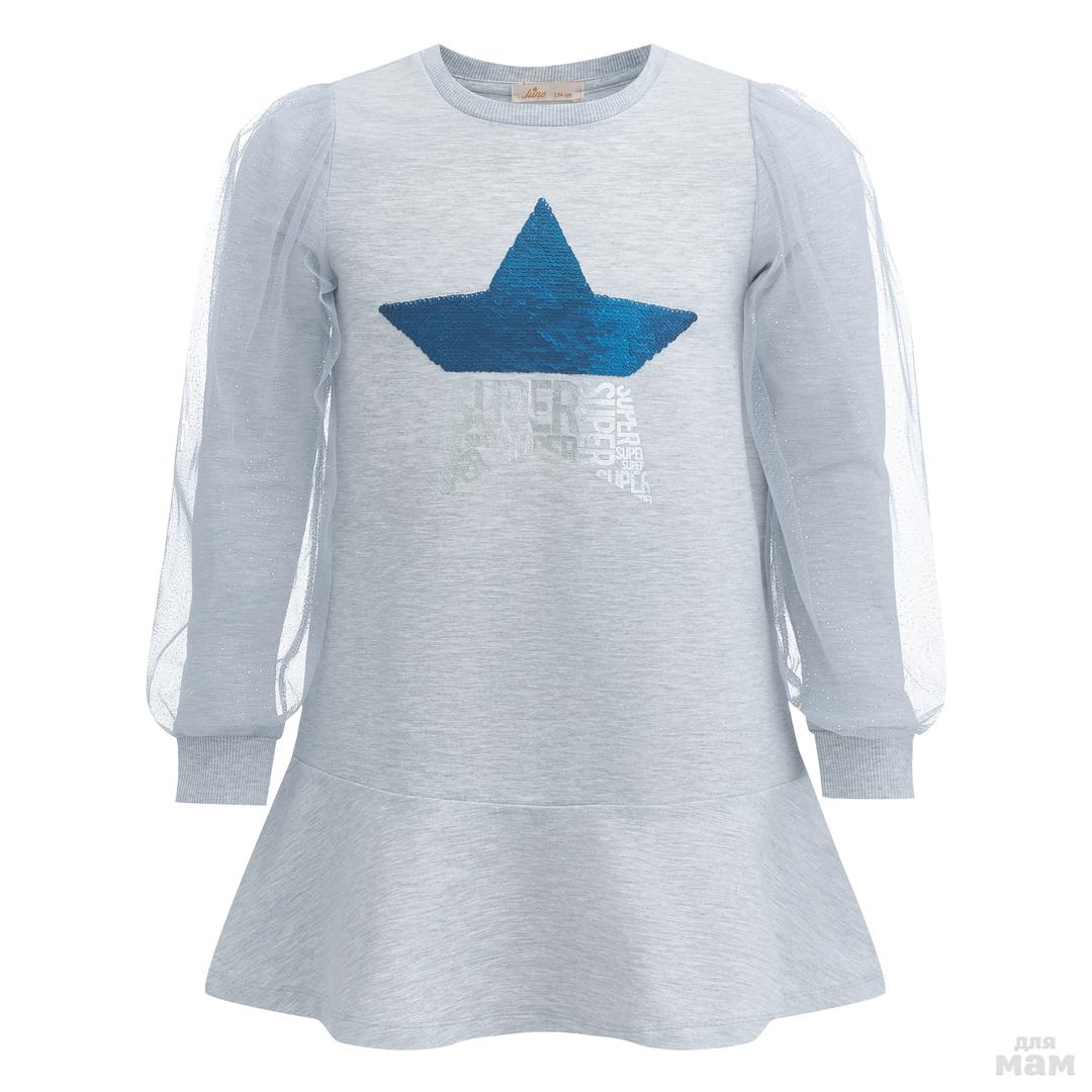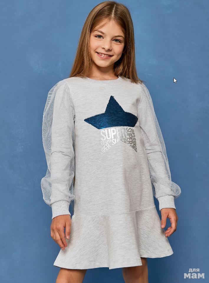 38.Платье д/дев Juno AW20GJ522 5 Stars серый меланж цена 931р НОВАЯ ЦЕНА 798р