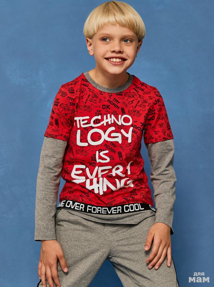 103.Фуфайка (футболка) модель "лонгслив" д/мал Juno AW20BJ621 Gamer красный/темно-серый меланж цена 511р НОВАЯ ЦЕНА 438р