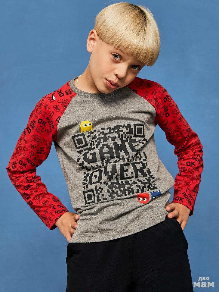 99.Фуфайка (футболка) модель "лонгслив" д/мал Juno AW20BJ622 Gamer темно-серый меланж/красный цена 441р НОВАЯ ЦЕНА 378р
