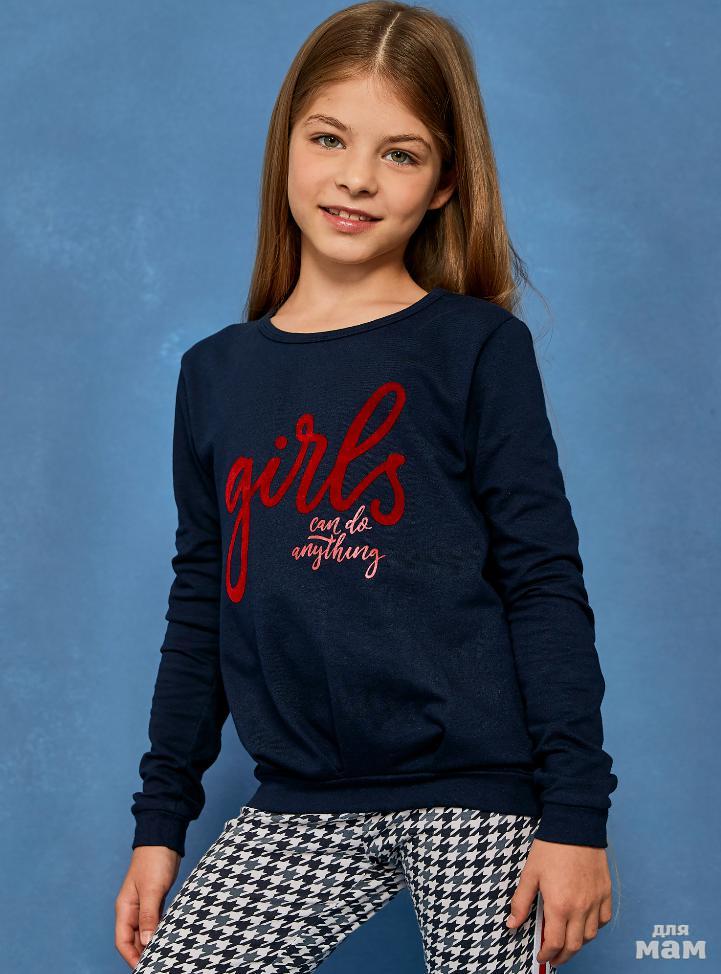 59. Пижама фуфайка (лонгслив), брюки д/дев Juno AW20GJ546 Sleepwear темно-синий космос цена 610р НОВАЯ ЦЕНА 522р