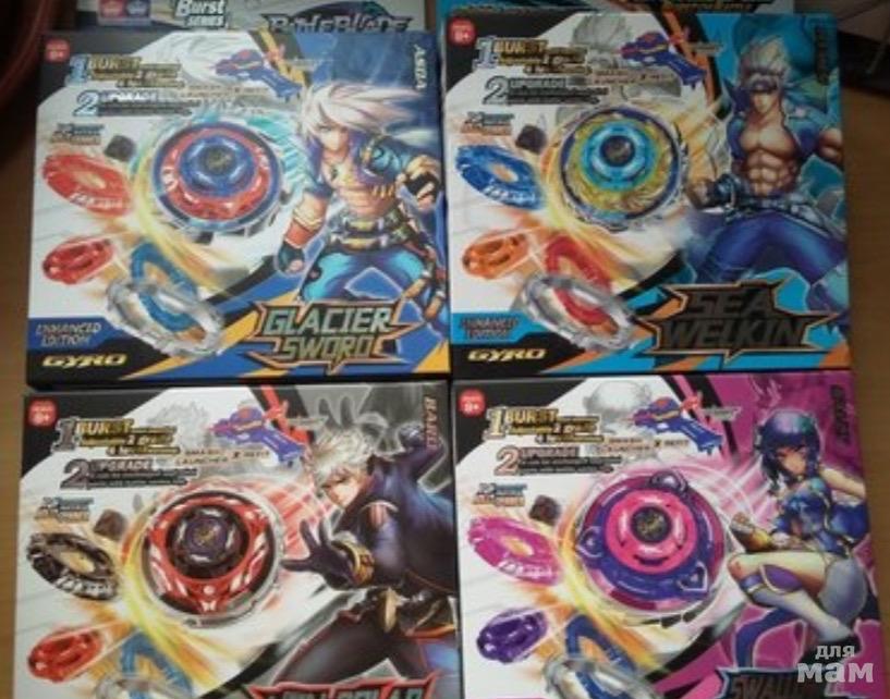 Волчки Infiniti оснащены драйвером, металлическим основанием и пятью энергетическими слоями. Имеется возможность апгрейда блейда, усиления атакующих или защитных свойств.
