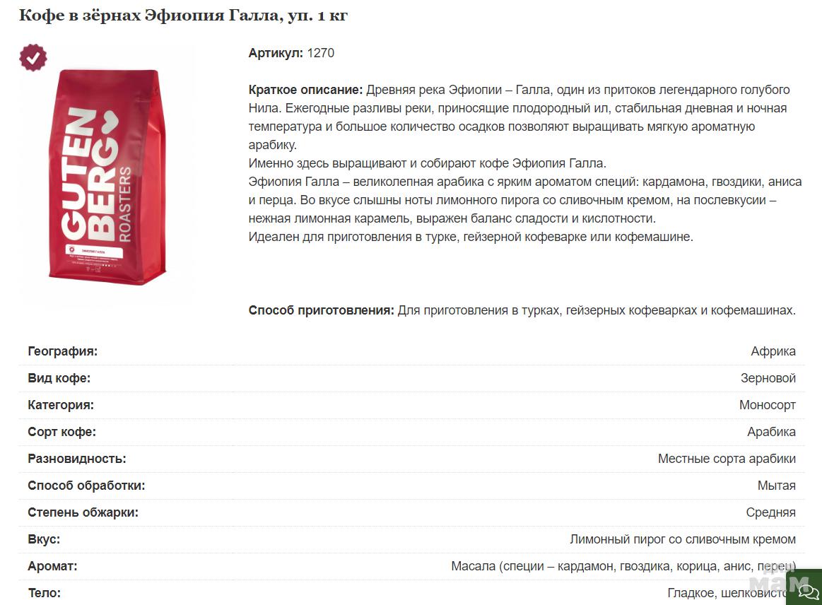Эфиопия Галла 1270 - 650 рублей / 1 кг