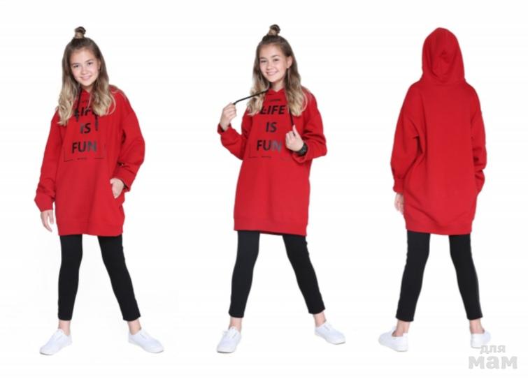 Футера + начес. Теплая, по типу оверсайз. Сочетается со штанами, джинсами, лосинами, колготками. Принт под эко-кожу.