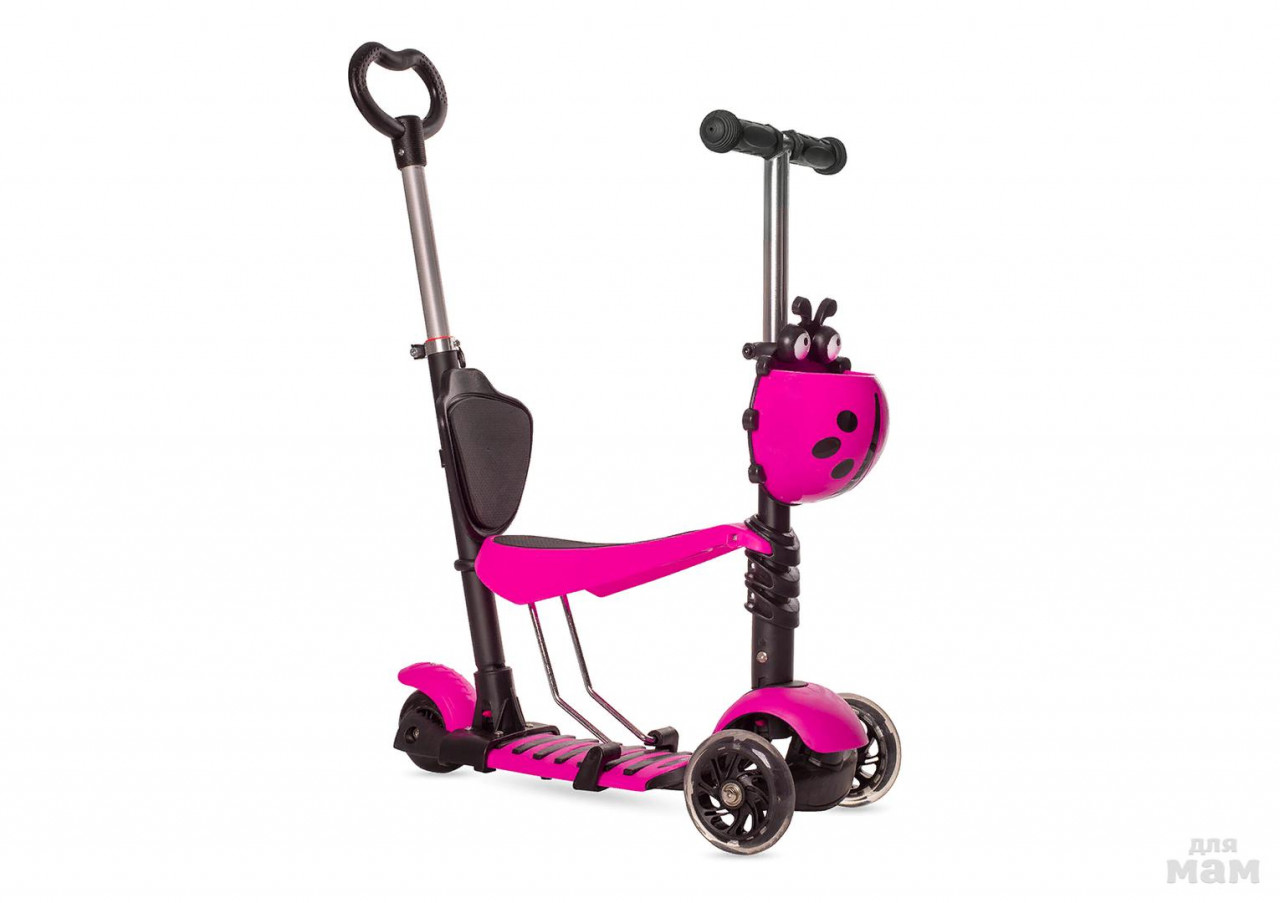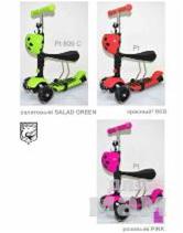 Самокат-беговел трехколесный, MG**023В светящиеся колеса. Материал: алюминий, пластик. Регулируемая/растущая ручка: 65-75cм, переставное сиденье, корзина на руле, колеса: PU. Передние - 120 мм, заднее - 80 мм, в коробке. Цвет: салатовый, розовый.