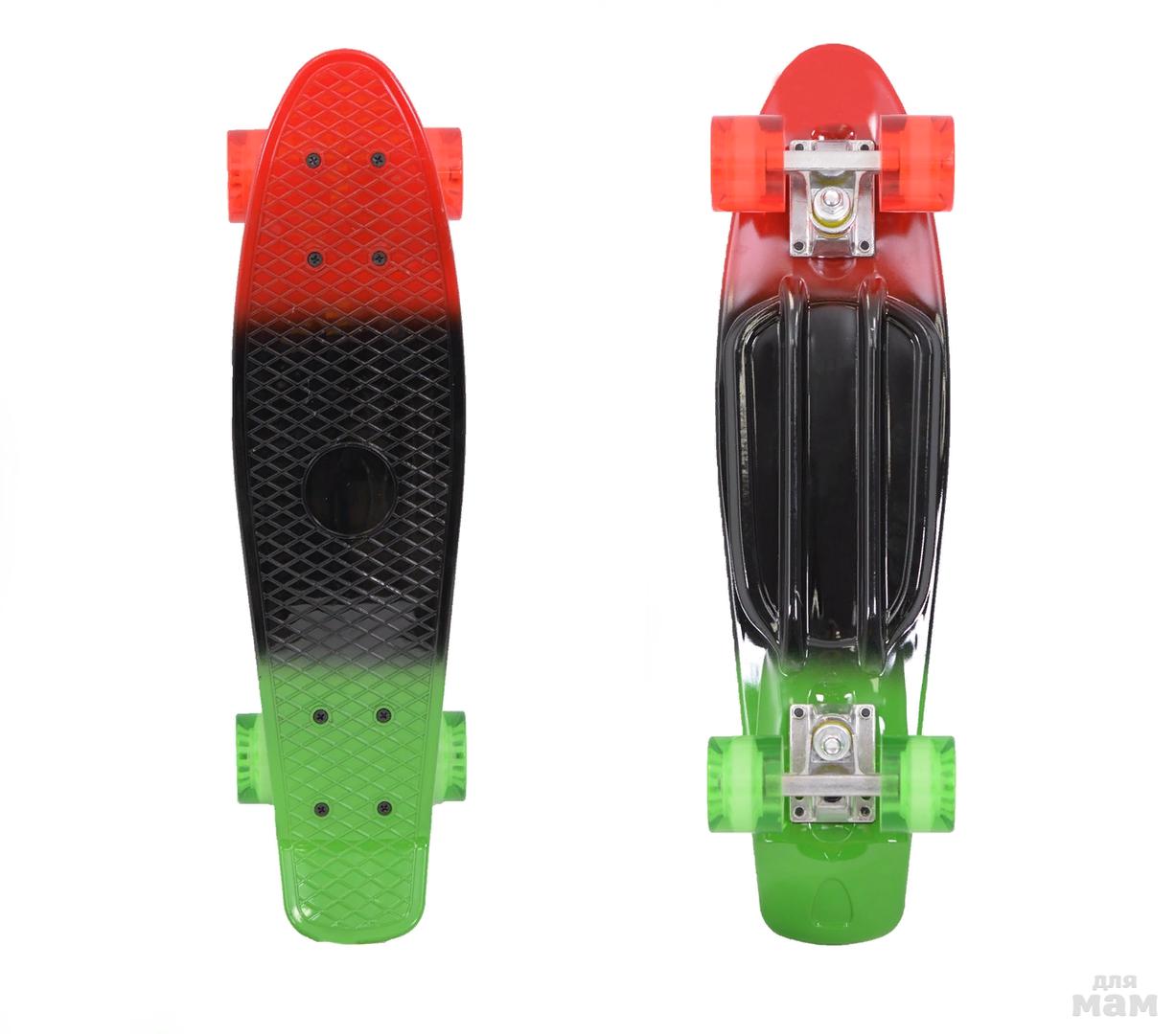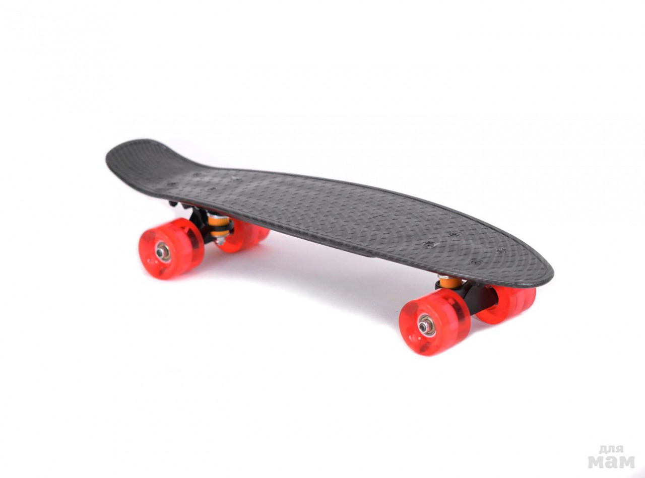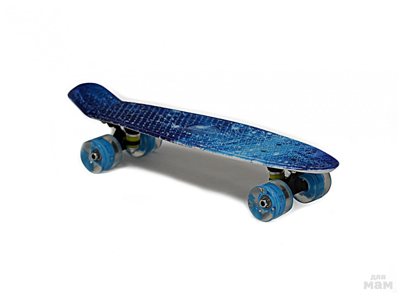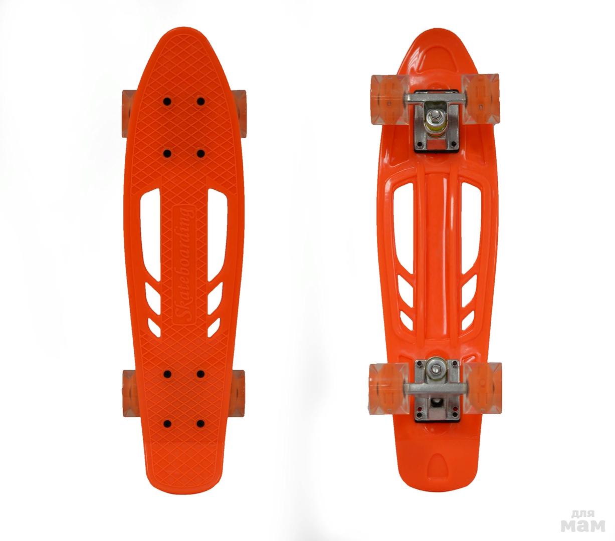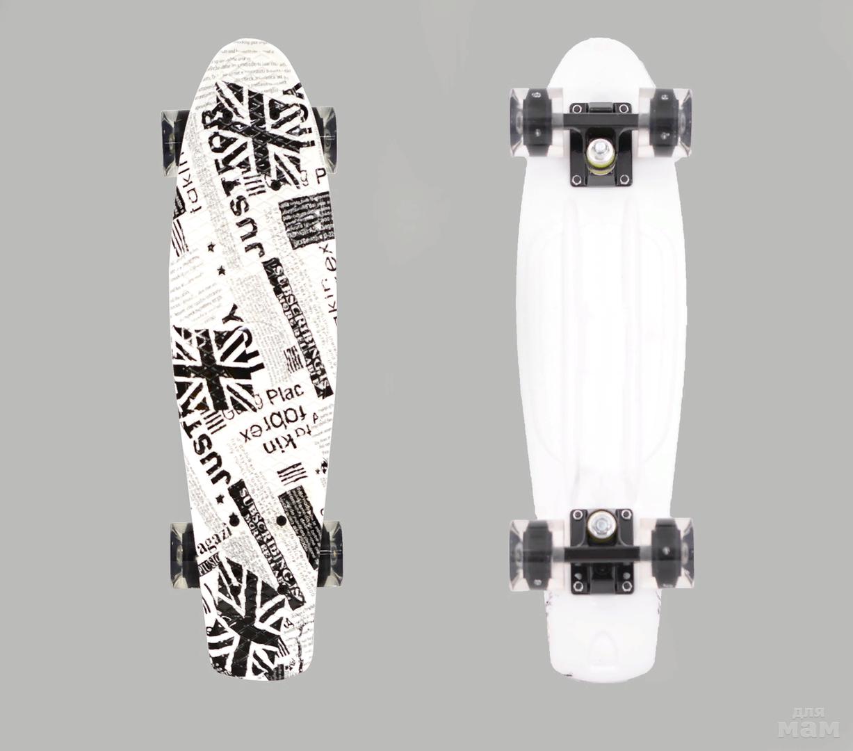 Материал: дека- пластик без принта 61 х14 см, колеса PU 60мм, с подсветкой, подшипник АВЕС-7, шасси алюминиевые