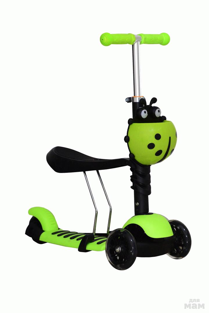 Самокат-беговел трехколесный, MG**023В светящиеся колеса. Материал: алюминий, пластик. Регулируемая/растущая ручка: 65-75cм, переставное сиденье, корзина на руле, колеса: PU. Передние - 120 мм, заднее - 80 мм, в коробке. Цвет: салатовый, розовый.