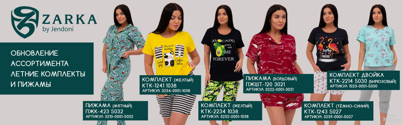 Компания «ZARKA» – производитель Ивановского трикотажа. Женский трикотаж- для разных типов женских фигур, что способствует комфортабельной носке и привлекательности одежды., мужской трикотаж, детский трикотаж. Домашняя одежда, спецодежда.