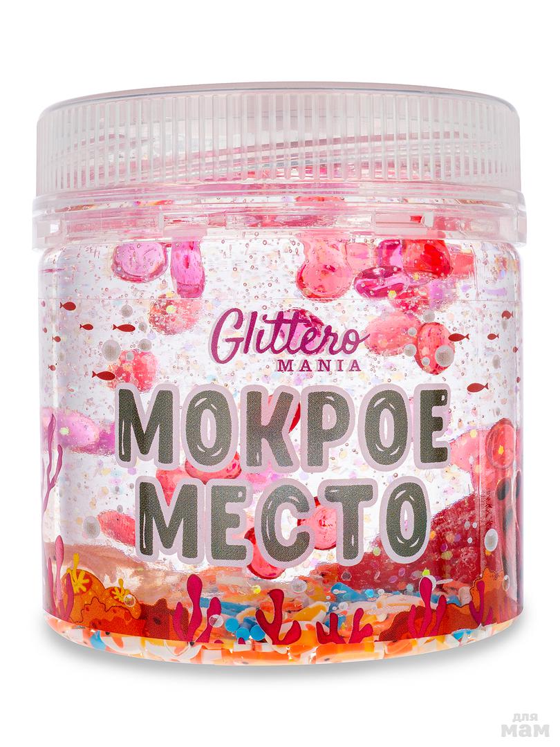 Прозрачный слайм «Мокрое место» с перламутровыми блестками и необычной добавкой фишболлы.