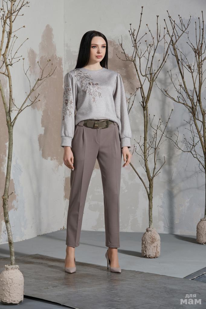 Стильный универсальный мягкий джемпер из замшевого полотна . Модель свободной формы полуприлегающего силуэта, с овальным вырезом горловины, с втачным длинным рукавом, Горловина обработана планкой из основной ткани. Перед модели декорирован яркой дизайнерской вышивкой.