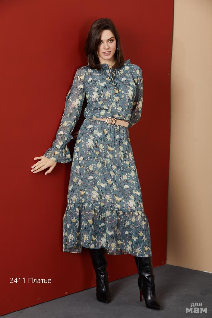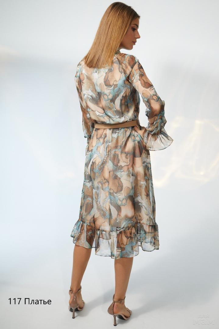 Изящное модное платье из итальянского шифона. Модель свободной формы, по линии талии вставлена резинка, расширенное к низу. Платье отрезное чуть выше линии талии с двумя ярусами воланов. Пояс в комплекте.