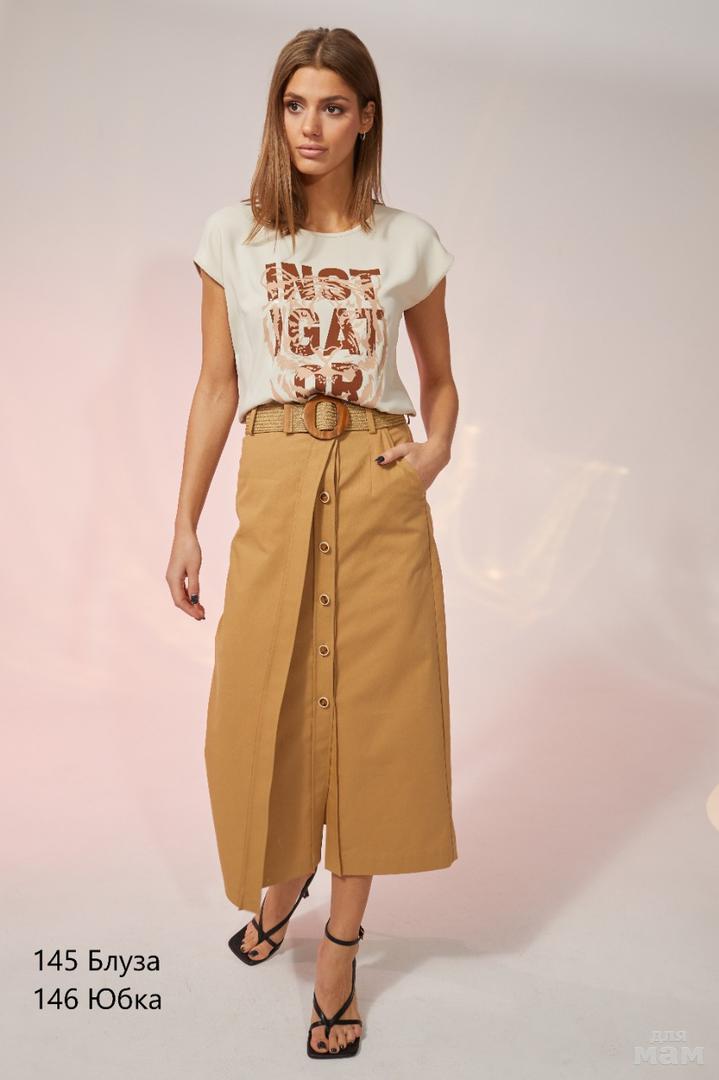 Стильная юбка женственной формы из хлопка. По переду и спинке юбки пояс кокетка со шлевками, где можно одеть декоративный пояс. По переднему шву функциональная застежка на петли и пуговицы. Пояс из экокожи в комплекте