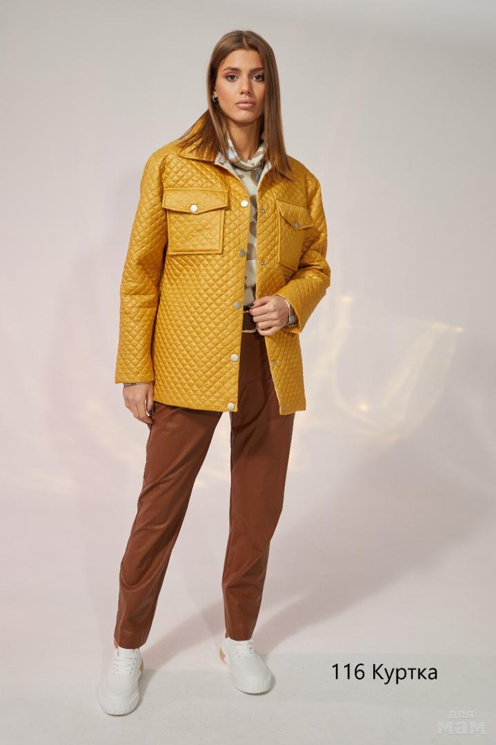 Куртка прямого силуэта с застёжкой на петли и пуговицы. Модель свободной формы с рубашечным рукавом. По спинке выполнена кокетка. По переду изделия накладные карманы.