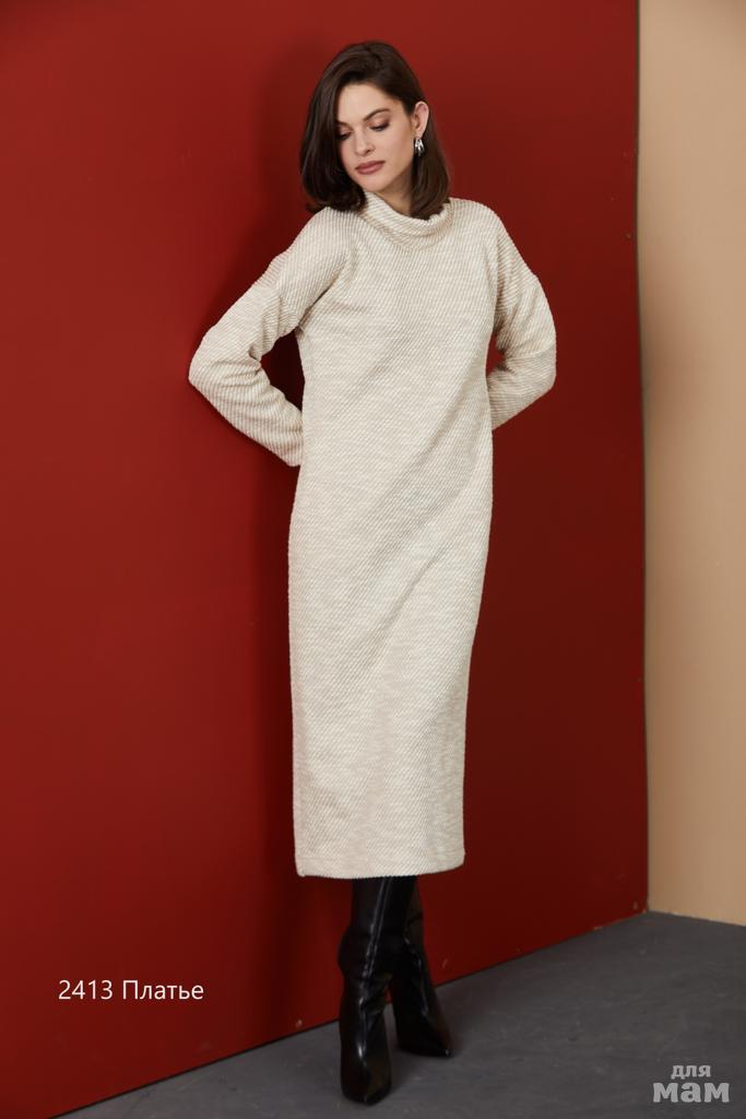 Стильное трикотажное женское платье из трикотажного полотна, модель полуприлегающего силуэта, со спущенным рукавом. В боковых швах присутствуют карманы.