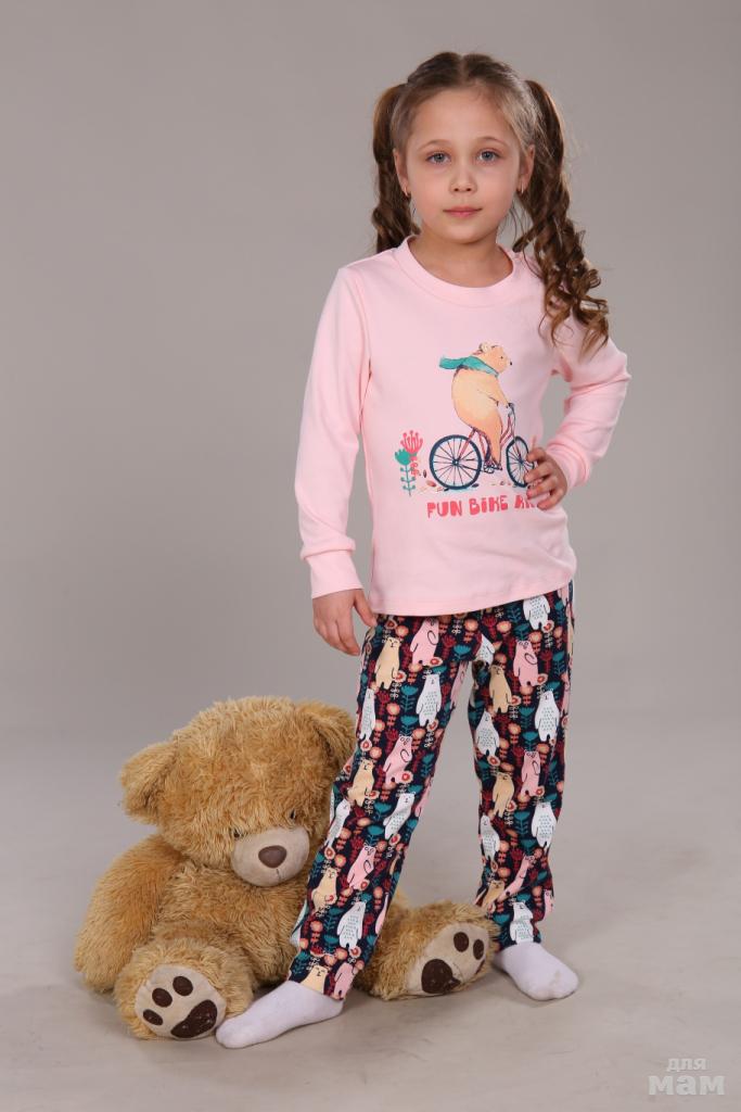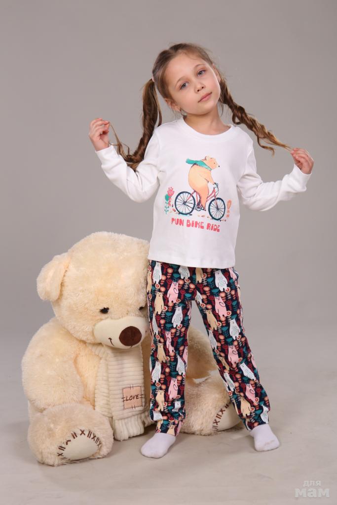 ПУ-013-010 Пижама для девочки «Мишка на велосипеде» 700+орг