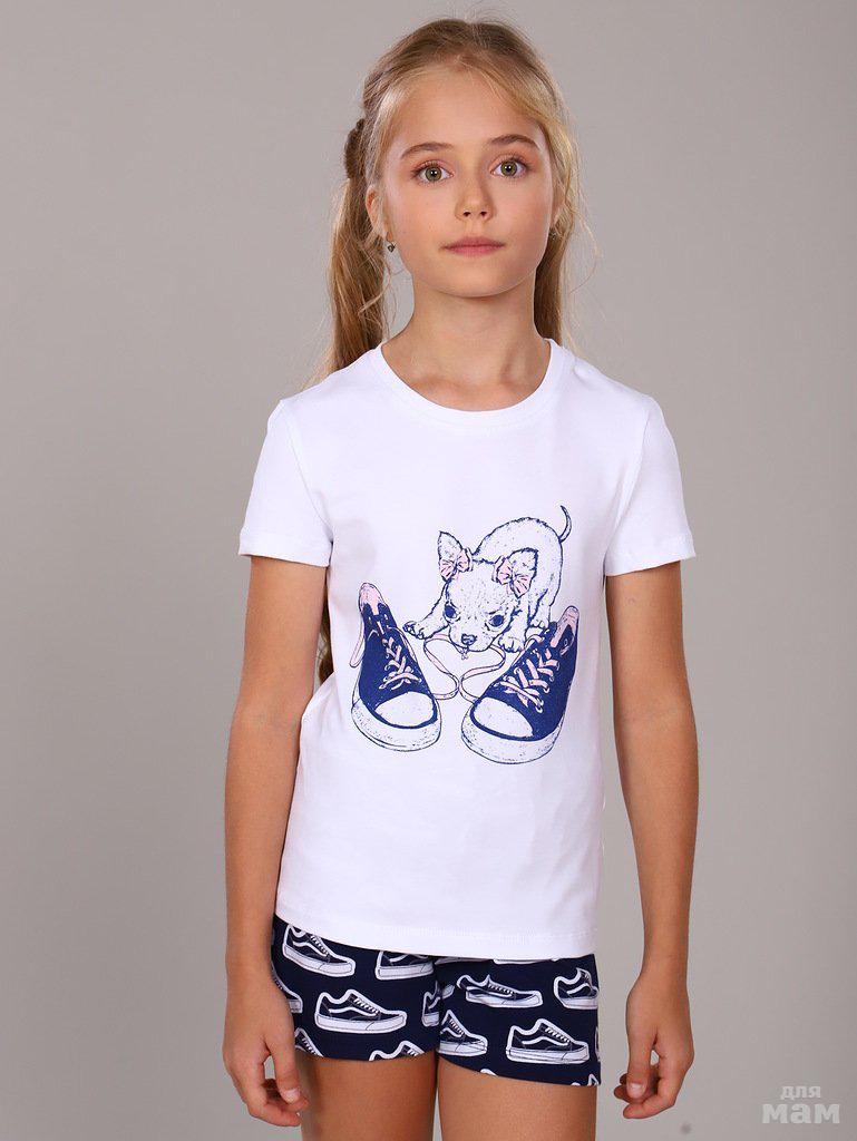 Пижама для девочки «Коты в чашке» ПД-009-020 с шортиками цена 625р+орг