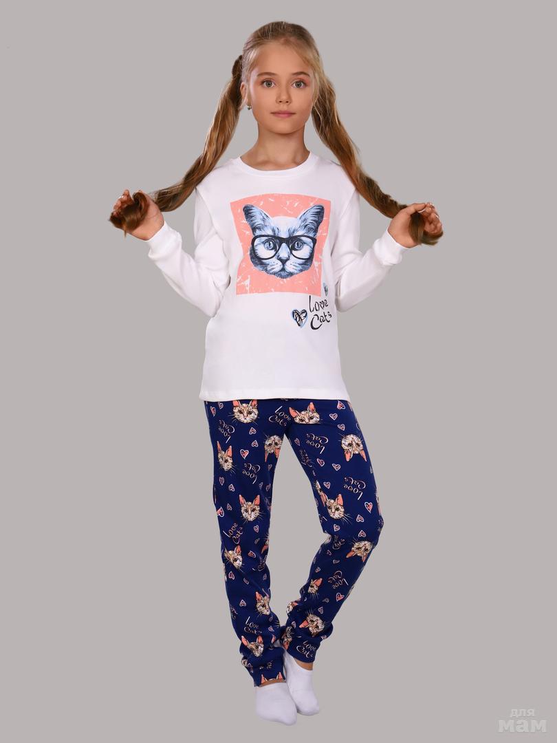 ПУ-011-023 Пижама для девочки "Кот в очках" цена 750р+орг