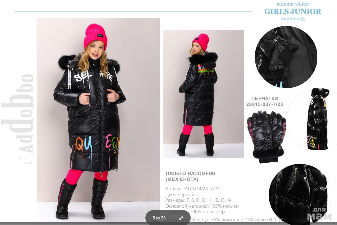 5999 руб. AD*JG40AW-722/23 Пальто для девочки FAKE FUR