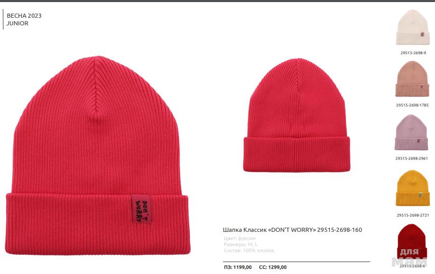 29*515-2698-160 Шапка Классик "DON`T WORRY" 1299,00 руб.