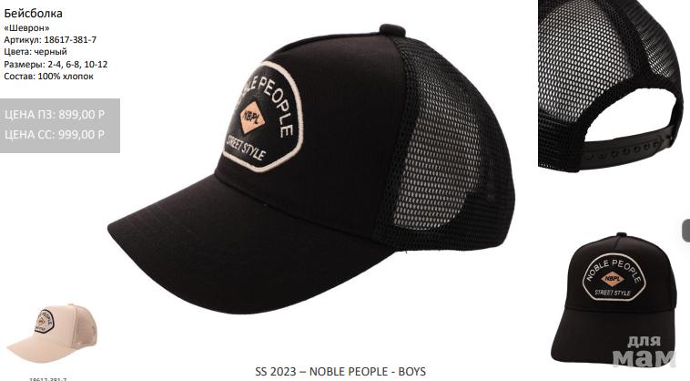 18*617-386-7 Бейсболка "NOBLE" 1099,00 руб.