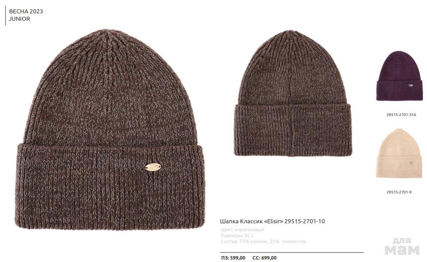 29*515-2701-10 Шапка Классик "ELISIR" 699,00 руб.