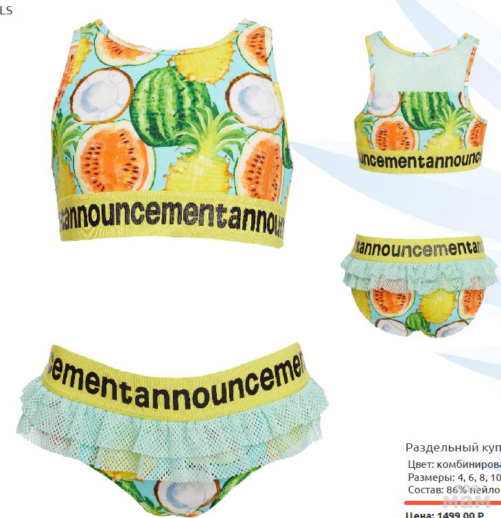 1199.00 руб. 28631-179-16 Купальник раздельный "Фрукты"