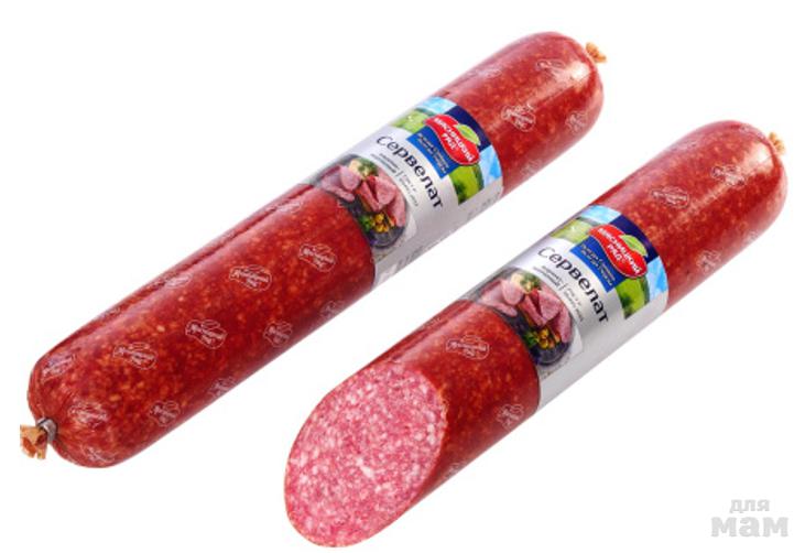Состав: свинина, нитритная соль (поваренная соль, фиксатор окраски нитрит натрия), глюкоза, специи натуральные (мускатный орех, перец душистый, перец черный,чеснок), усилитель вкуса и аромата (E621), стабилизатор (Е450i), гемоглобин, антиокислитель (аскорбат натрия), краситель (кармины), стартовые культуры.