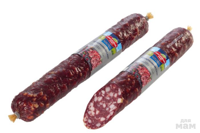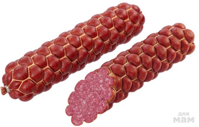 Описание: Упругая, в меру плотная консистенция. Мелкозернистая колбаса с красивым рисунком. Пряная, острая, для тех, кто хочет себя побаловать. Прекрасно смотрится в нарезке на праздничном столе.