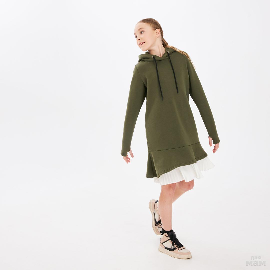 2245-1 Платье трикотаж 2-х нитка ,капюшон неоновый лайм/неон бабл гам,шнурок 5% лайкра 5% вискоза 90% хлопок 134-170 белый 2680+оорг
