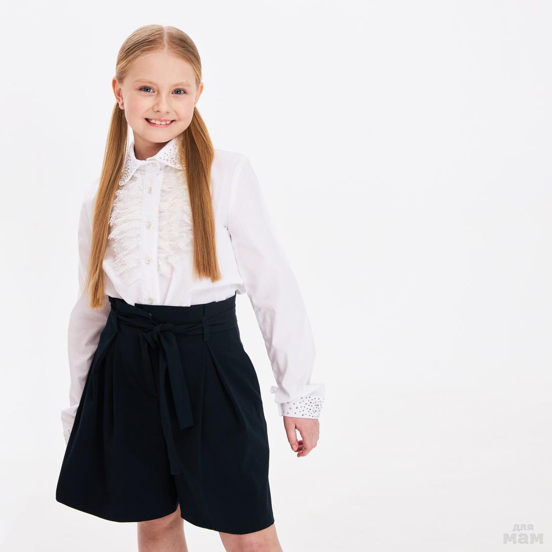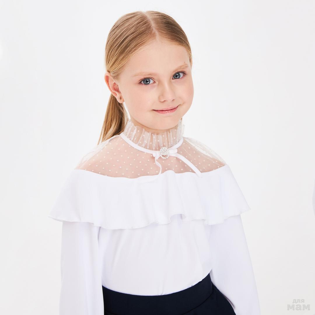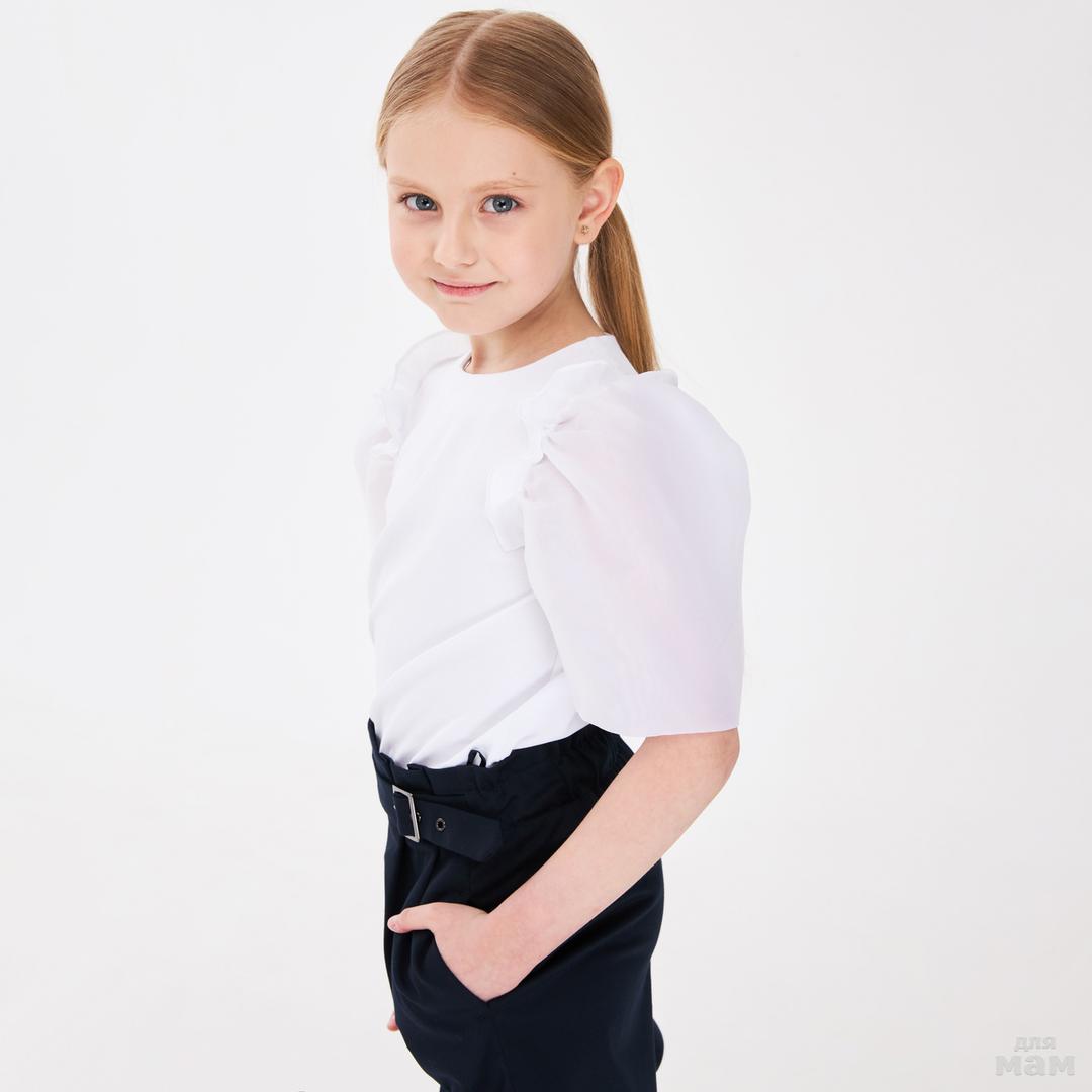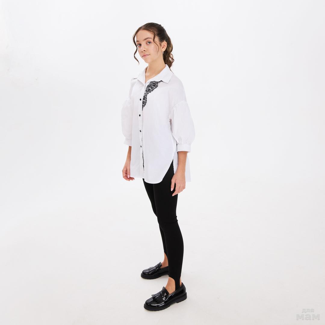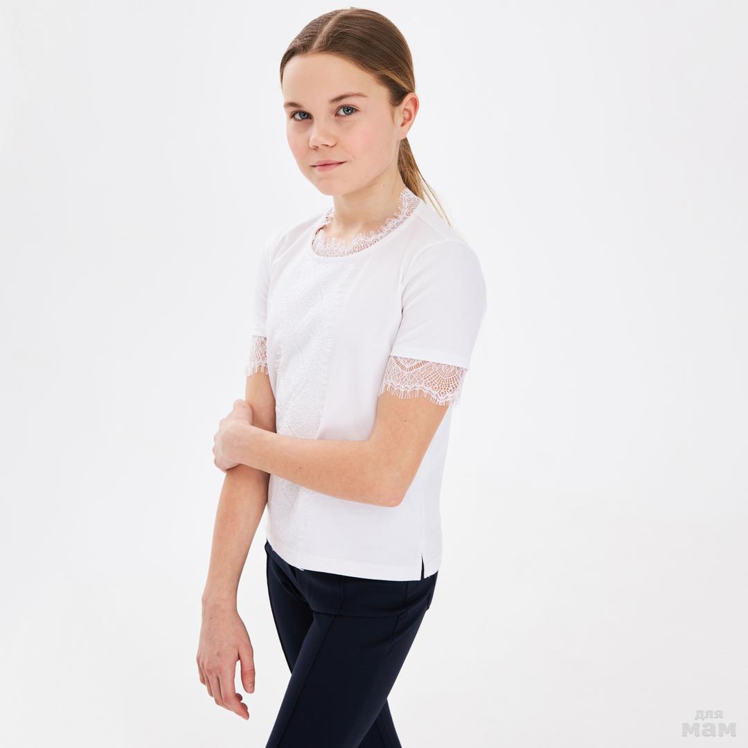 1921 блузка котон, кружева, стразы белый 5% лайкра 5% вискоза 90% хлопок 122-140 2650+орг