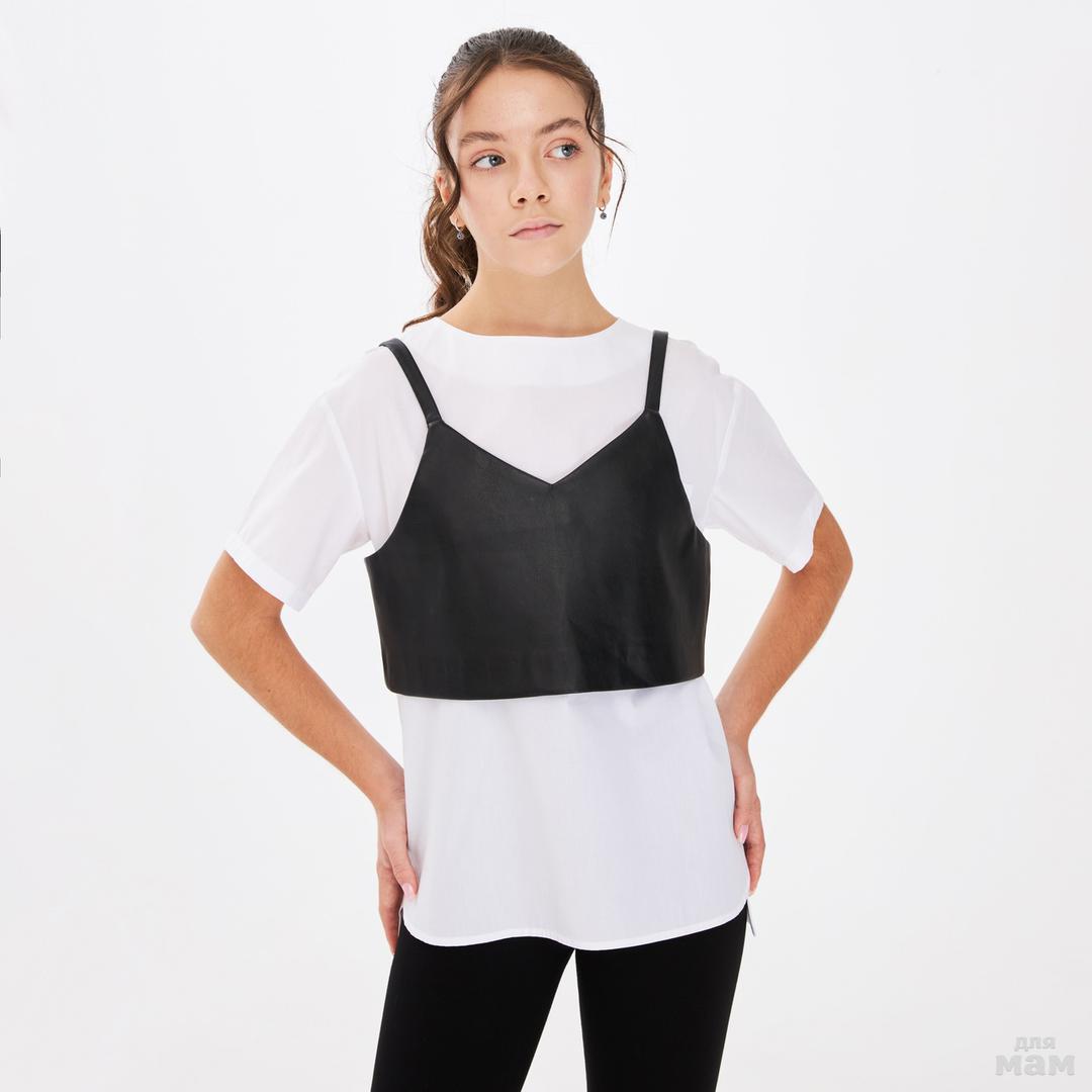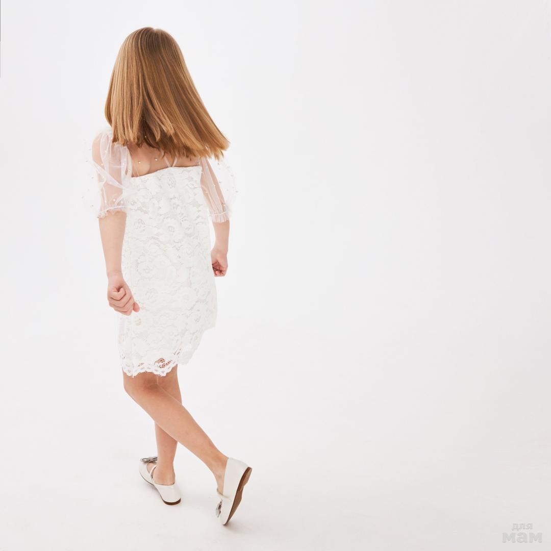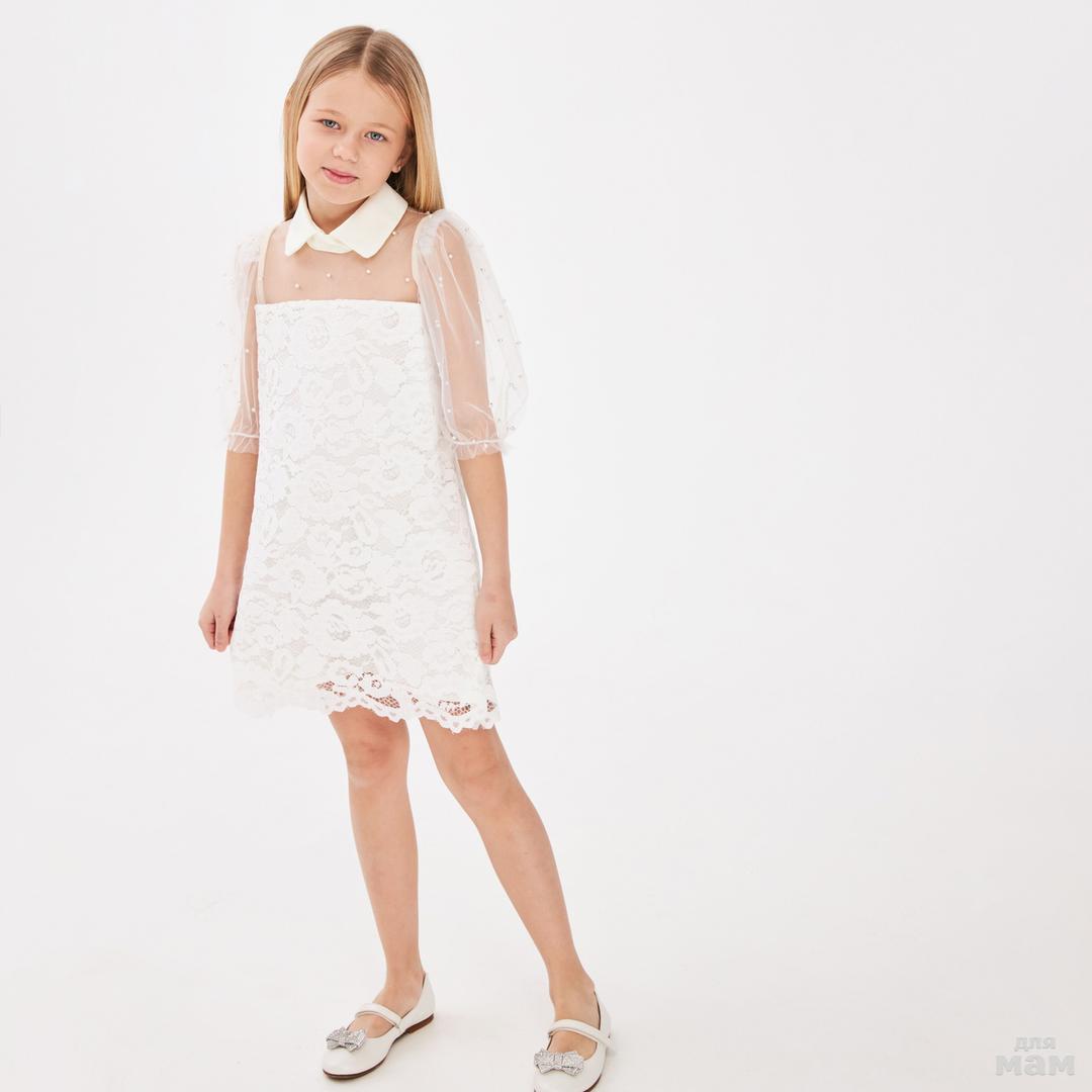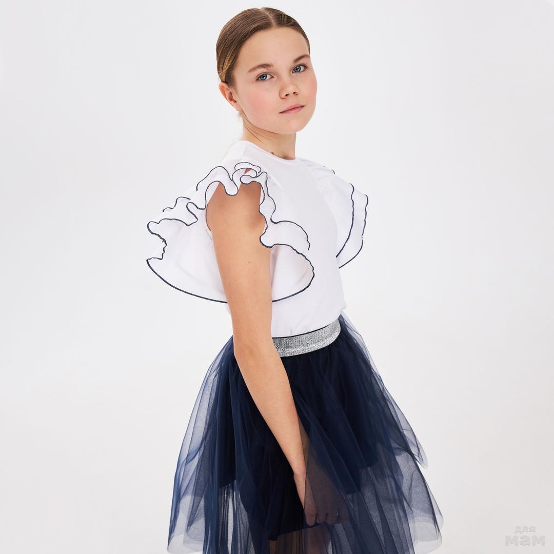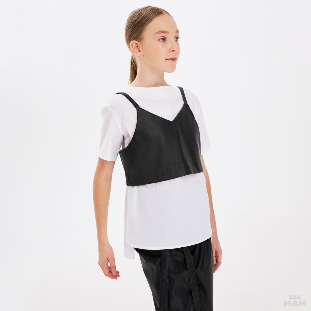 1921 блузка котон, кружева, стразы белый 5% лайкра 5% вискоза 90% хлопок 122-140 2650+орг