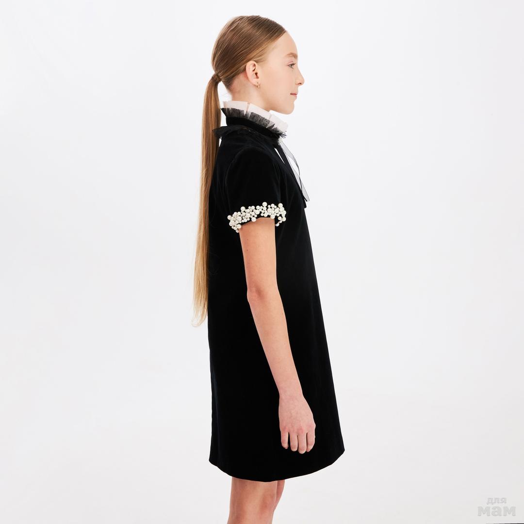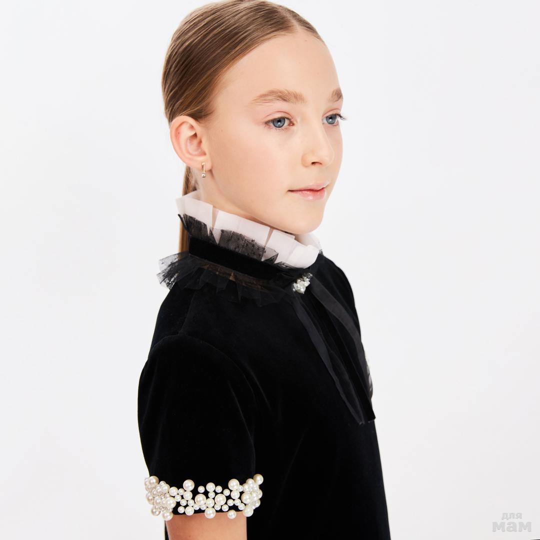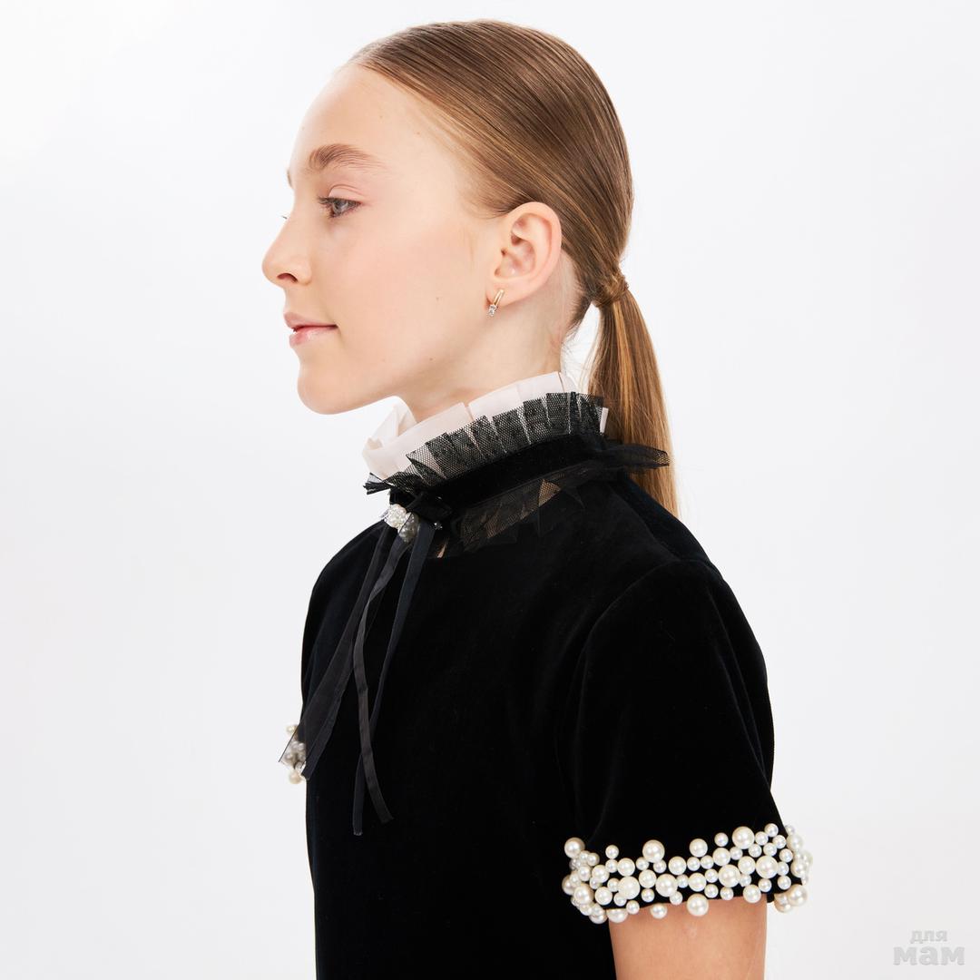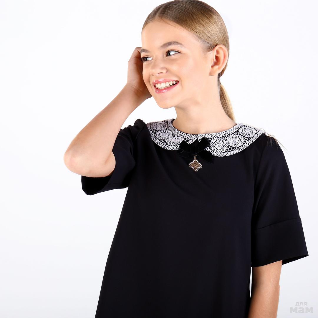 1618 платье текстиль, однотон, кружева-воротник черный 60% полиэстер, 35% вискоза, 5% эластан 122-140 2720 +орг