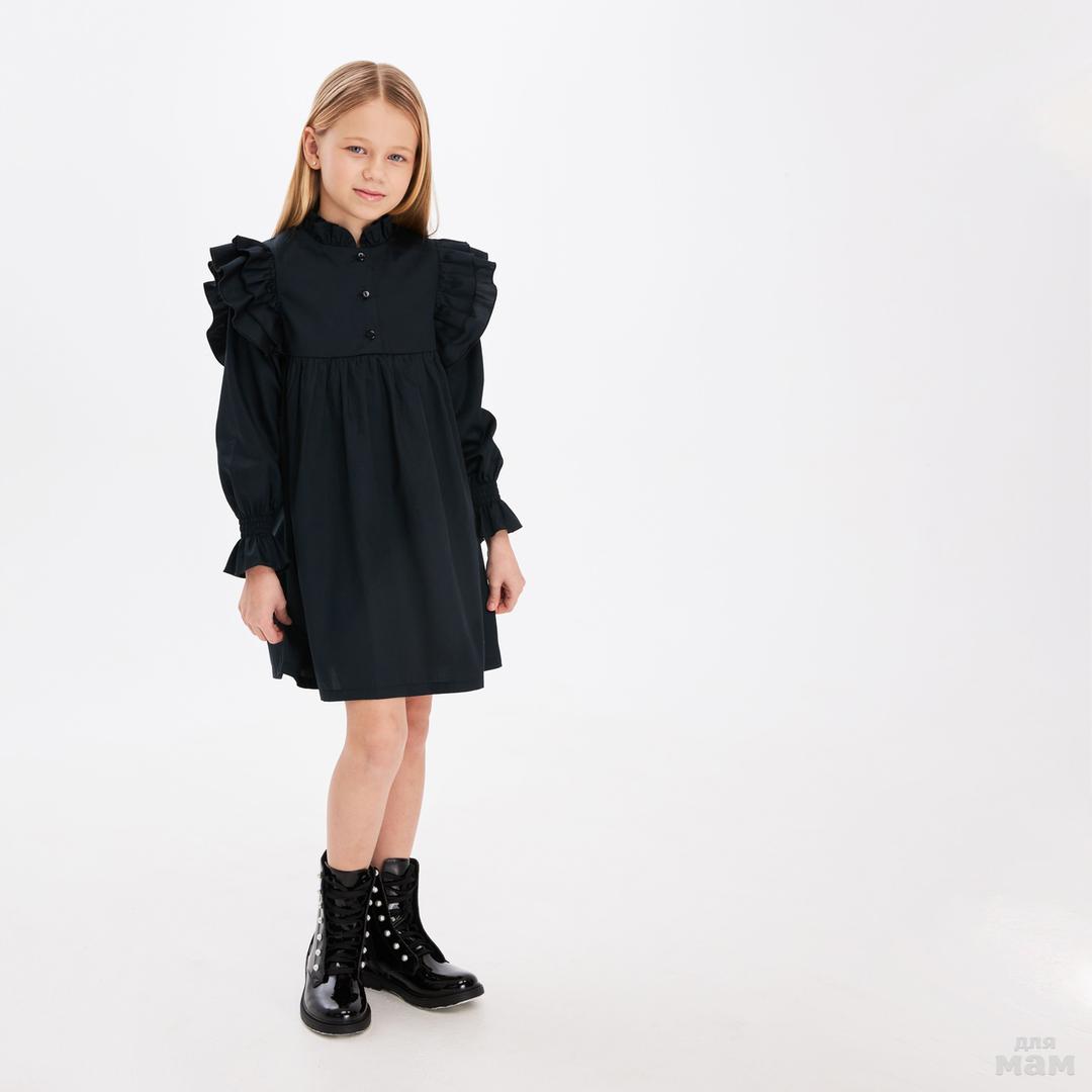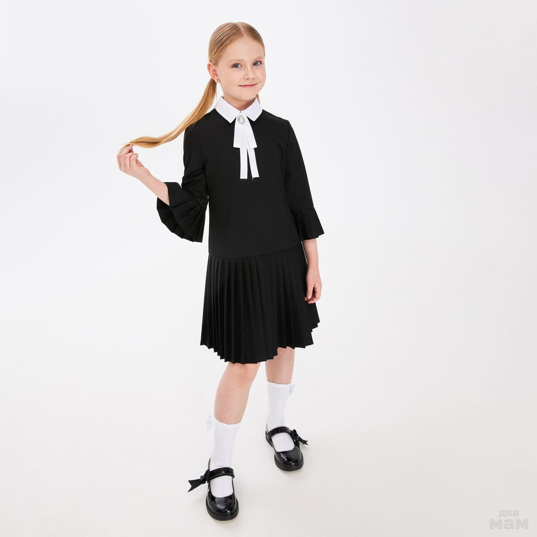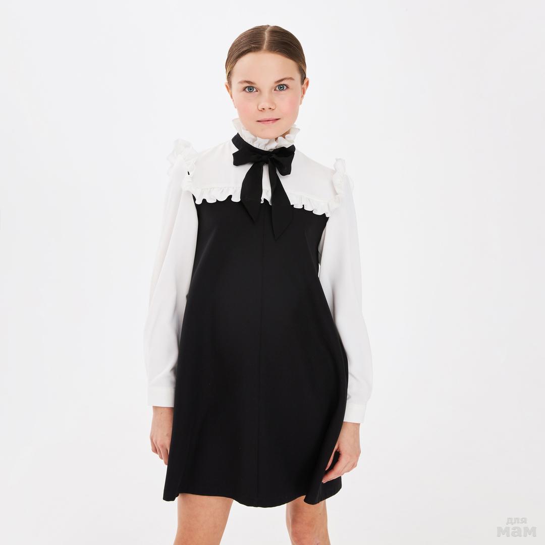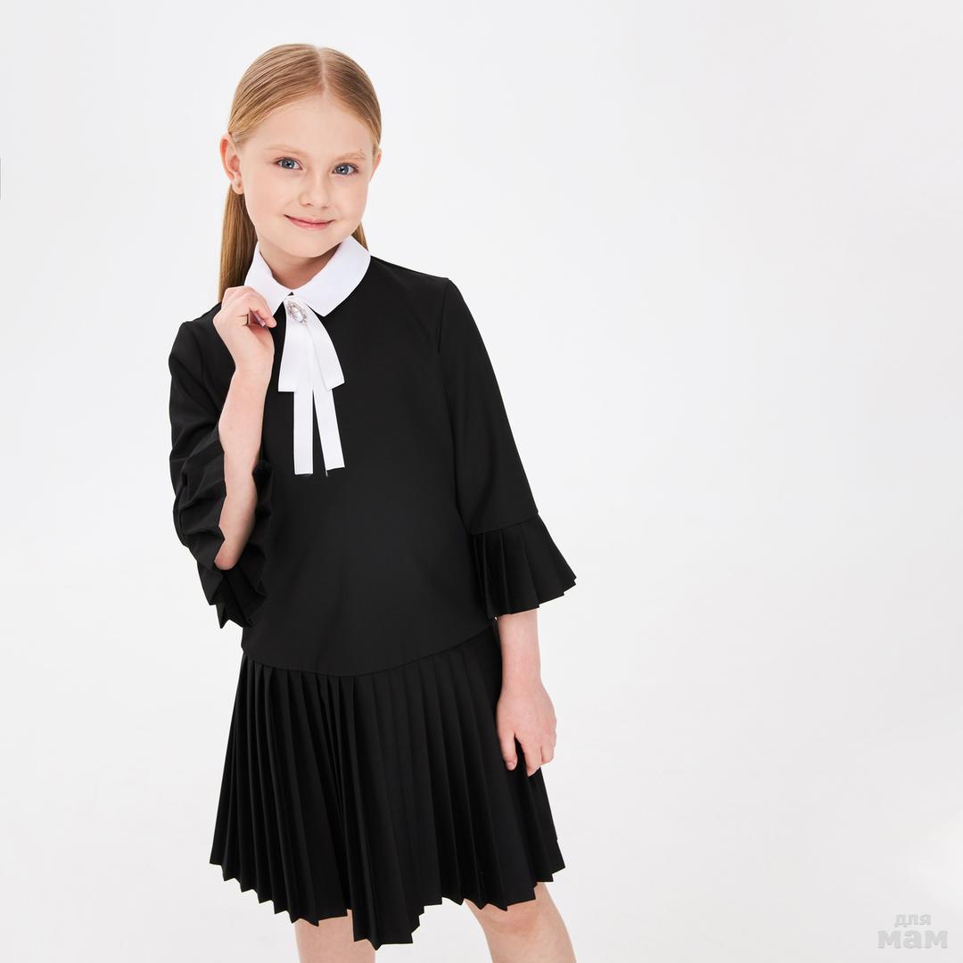 1618 платье текстиль, однотон, кружева-воротник черный 60% полиэстер, 35% вискоза, 5% эластан 122-140 2720 +орг