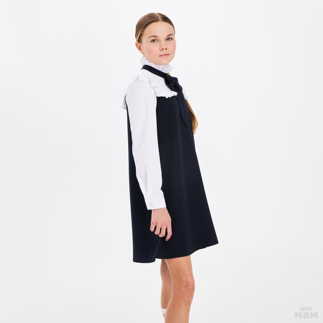 2332 платье текстиль, на кнопках, воротник тесьма кружевная синий 40% хлопок, 50% полиэстер, 10% эластан 146-170 2960+орг